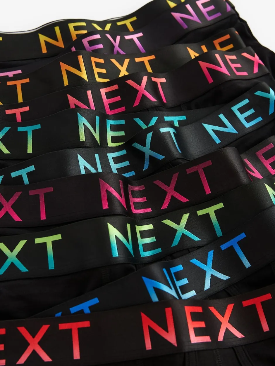 Next – Coupe standard – Caleçon A-Front 10 Pack Ceintures noires à texte ombré Clearance