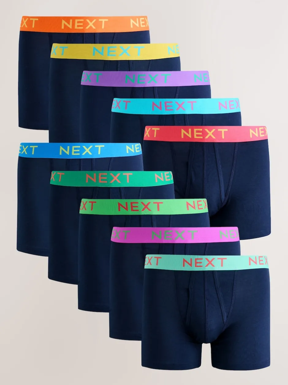 Next – Coupe standard – Caleçon A-Front 10 Pack Taille bleu marine à contrastes vifs Clearance