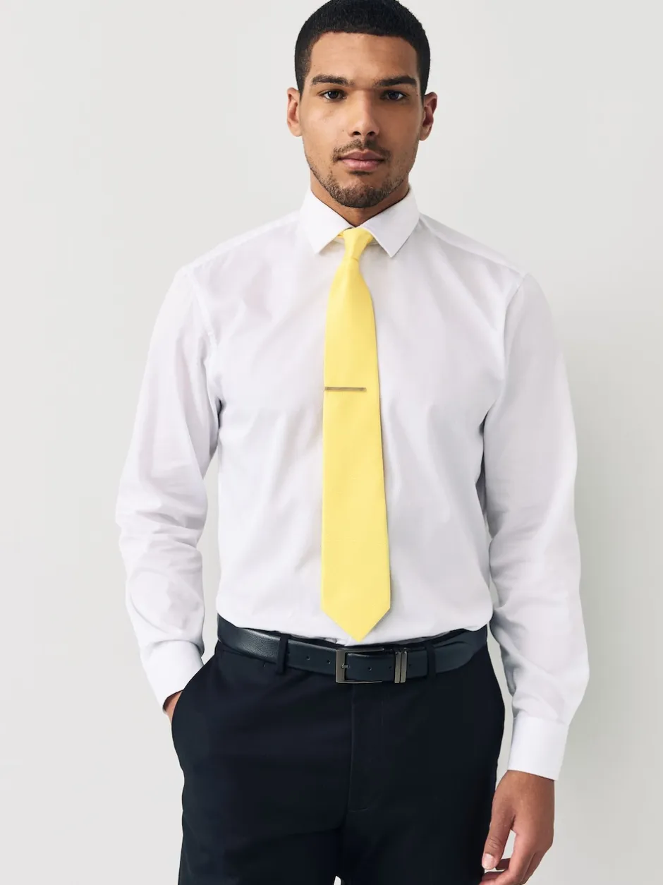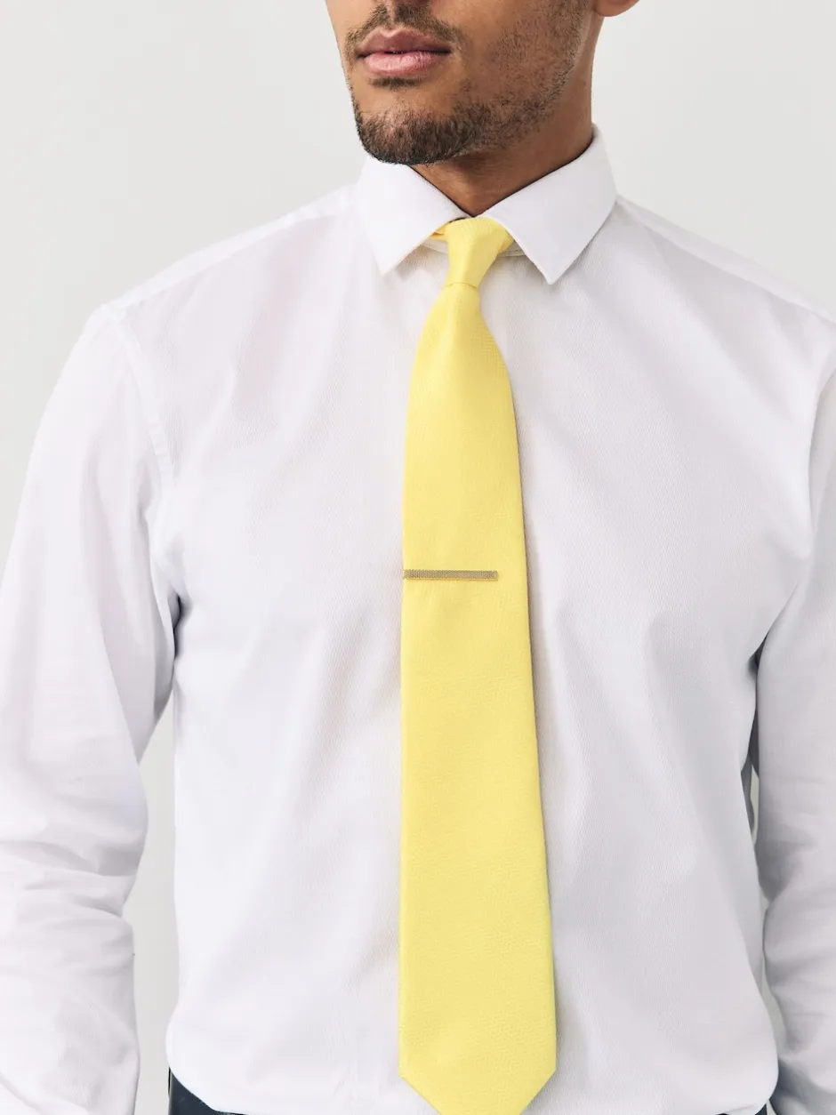 Next – Cravate texturée avec pince à cravate Jaune Best