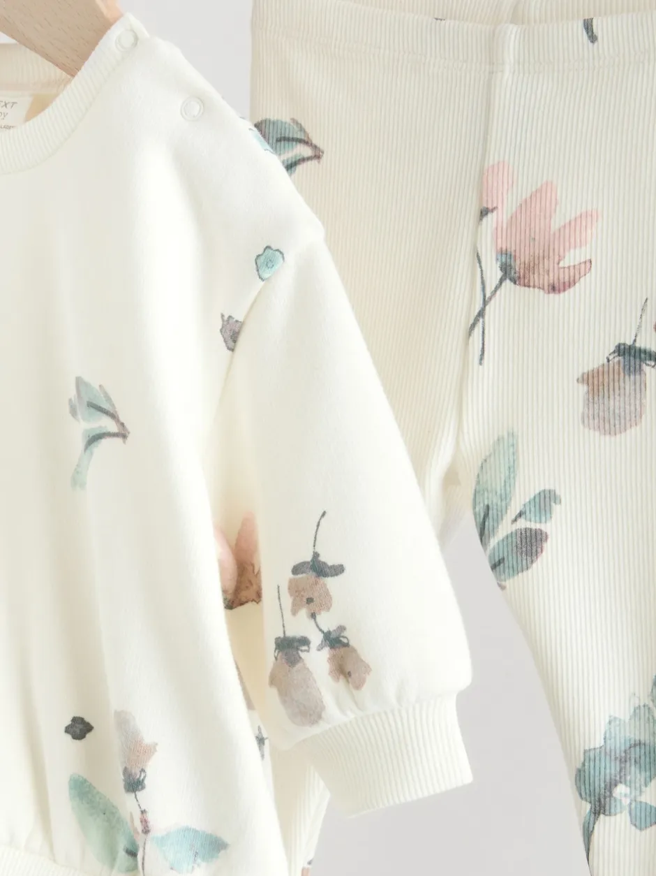 Next Crème fleuri – Ensemble Chandail et Survêtement bébé 2 Pièces (0mois-2ans)