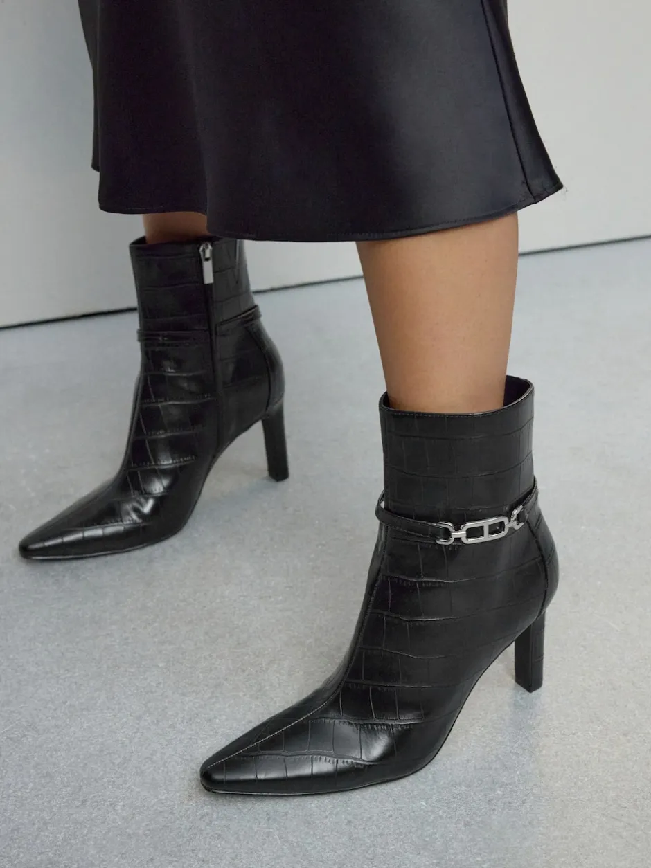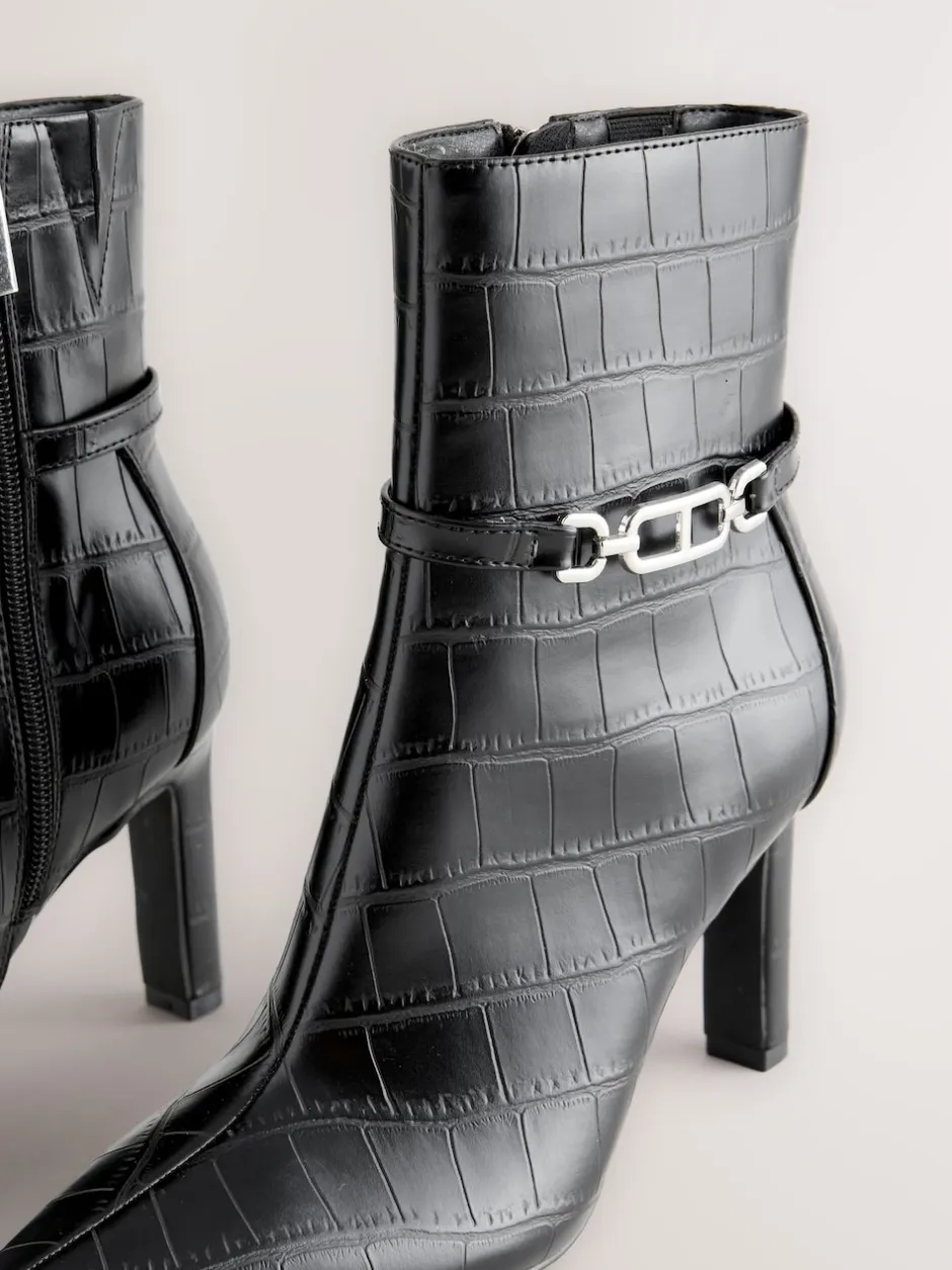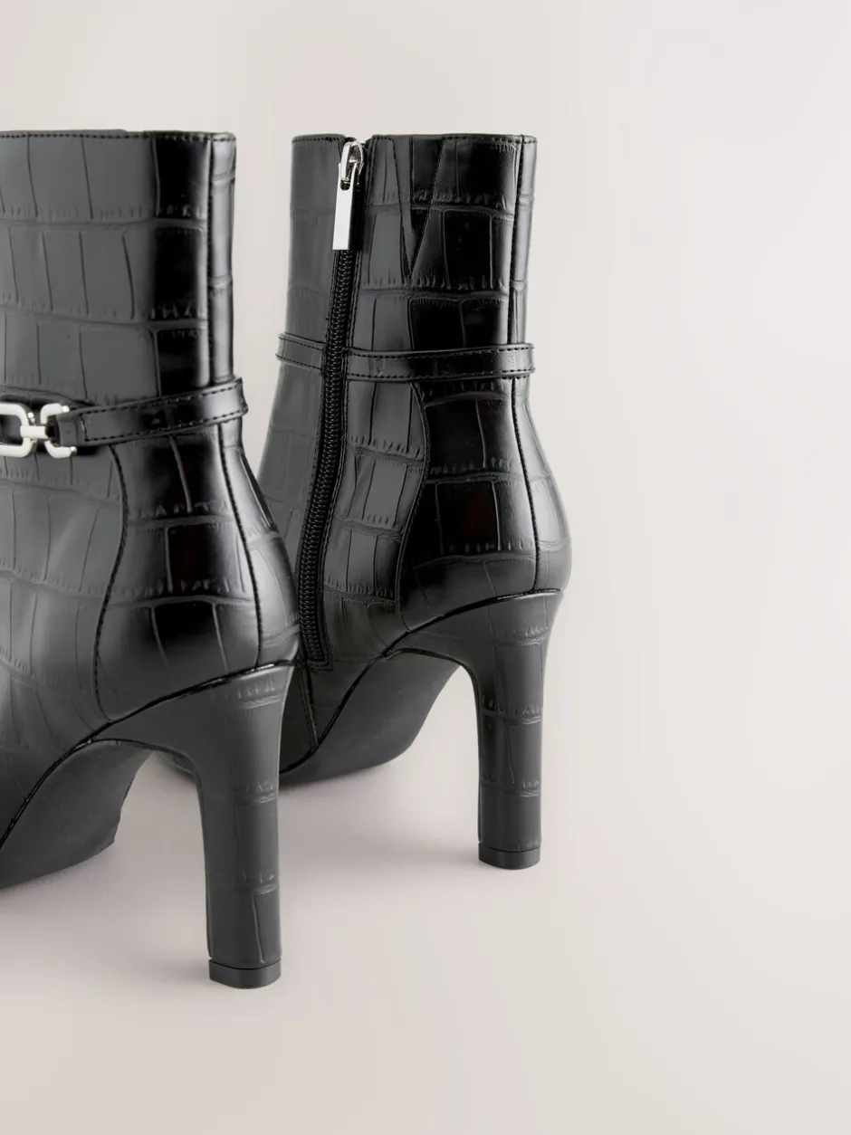 Next Croco noir en relief – Bottines à talons Forever Comfort® avec quincaillerie Sale