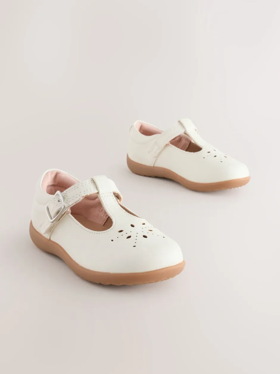 Next Cuir blanc – Chaussures premiers pas avec barre en T à fermeture par contact