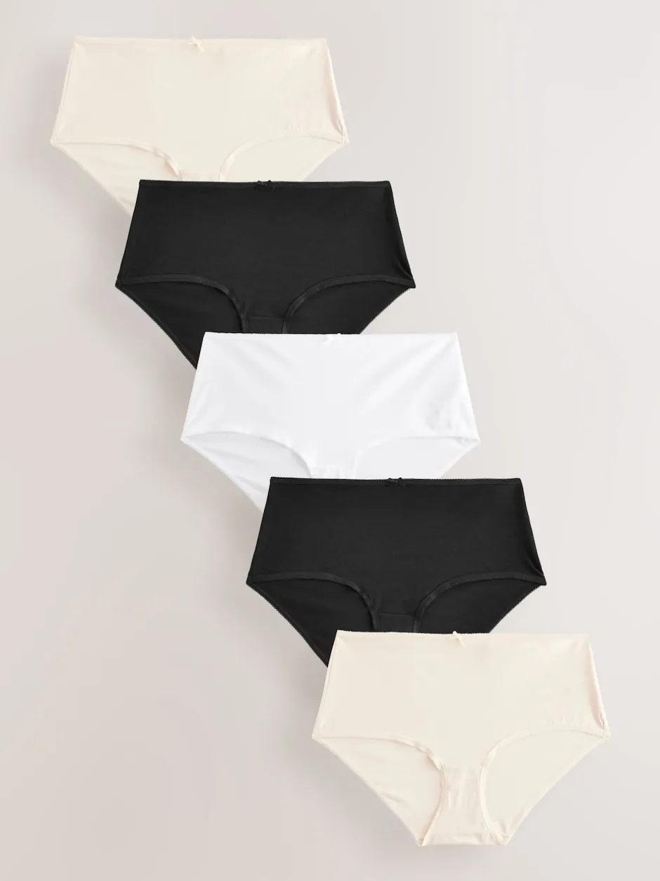 Next – Culotte en coton riche 5 Pack Noir/Rose pâle Nude/Blanc Hot