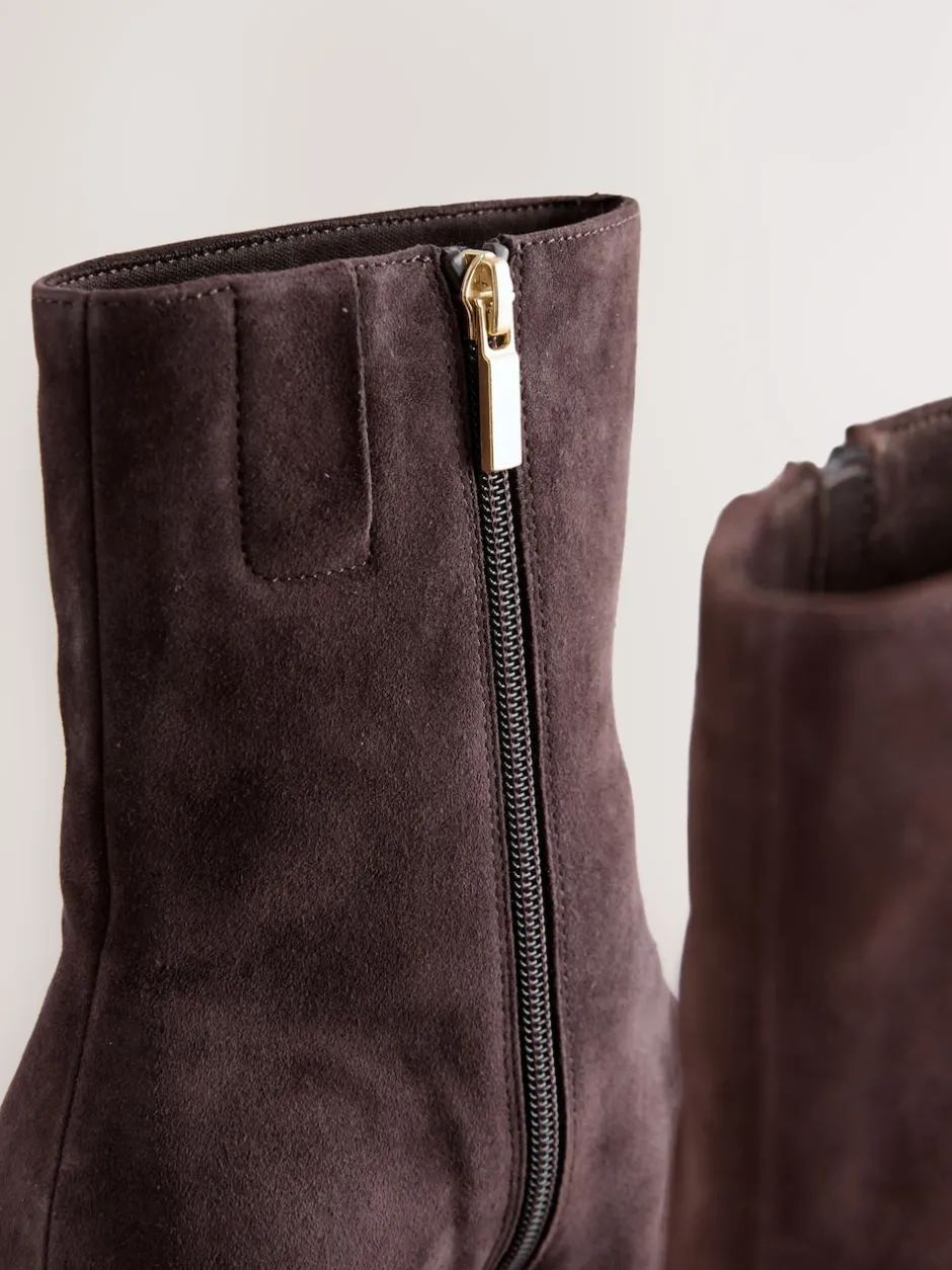 Next Daim marron chocolat – Bottines à talons Forever Comfort® avec bout ciselé Sale