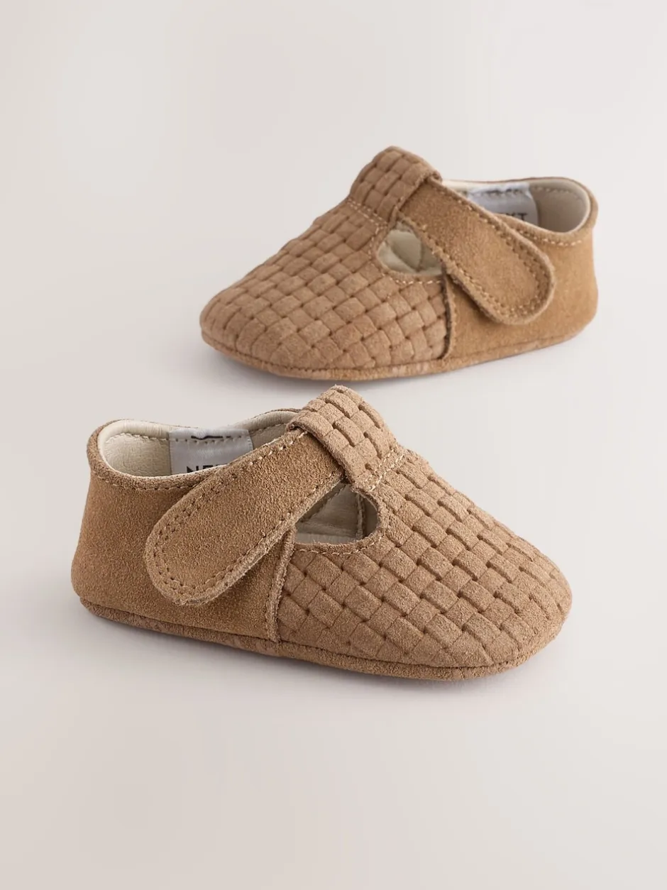 Next Daim tissé Fauve – Leather Bébé T-Bar Chaussures (0-24mths) Hot