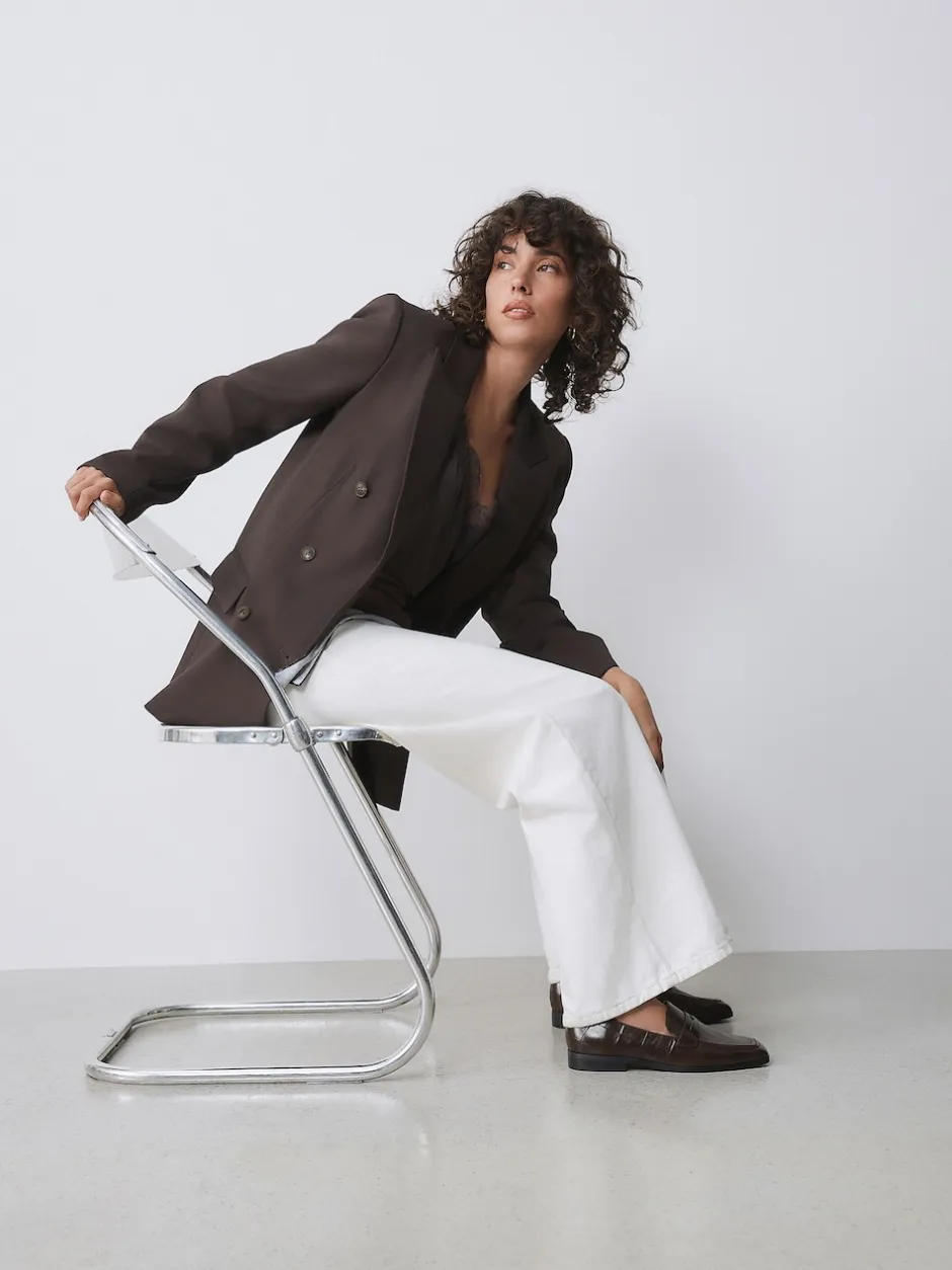 Next Effet croco Marron chocolat – Mocassins Forever Comfort® à bout carré