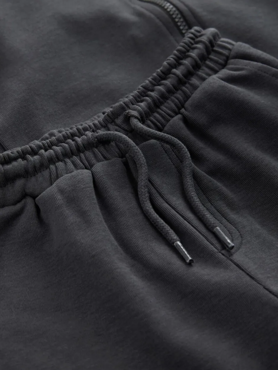 Lavable en machine. Veste et jogging 75% coton, 25% polyester recyclé. T-shirt 100% coton.