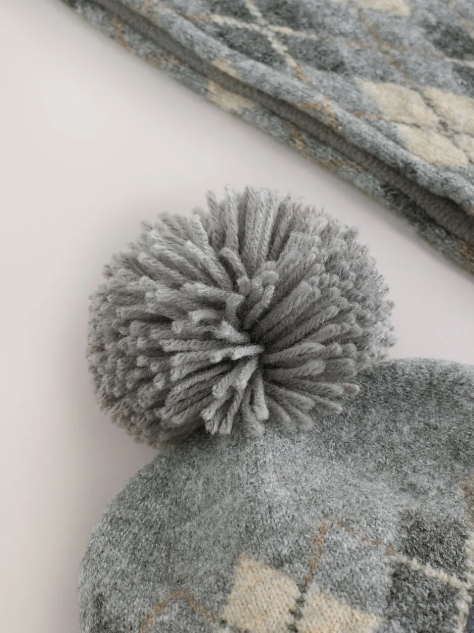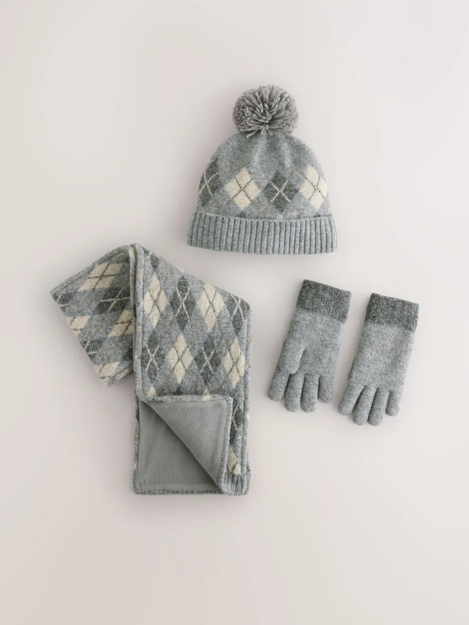 Next – Ensemble chapeau, écharpe et gants 3 pièces (3-16ans) Gris/blanc à losanges Best