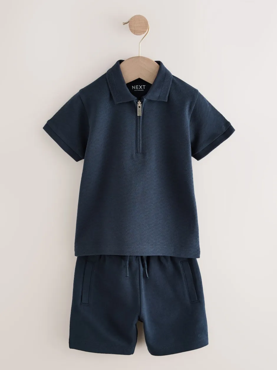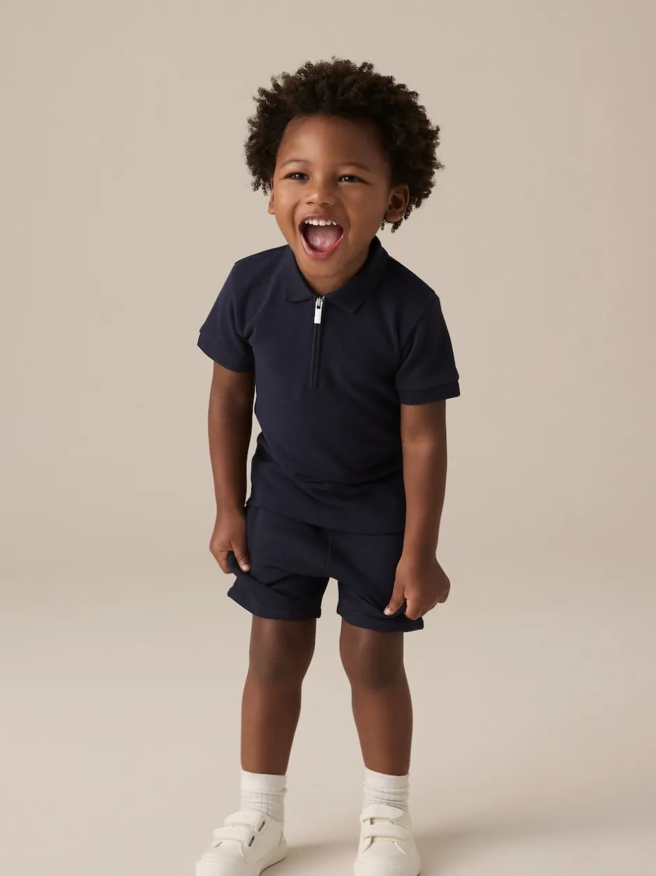 Next – Ensemble polos et shorts de manches (3mois-7ans) Marine Texturée Sale