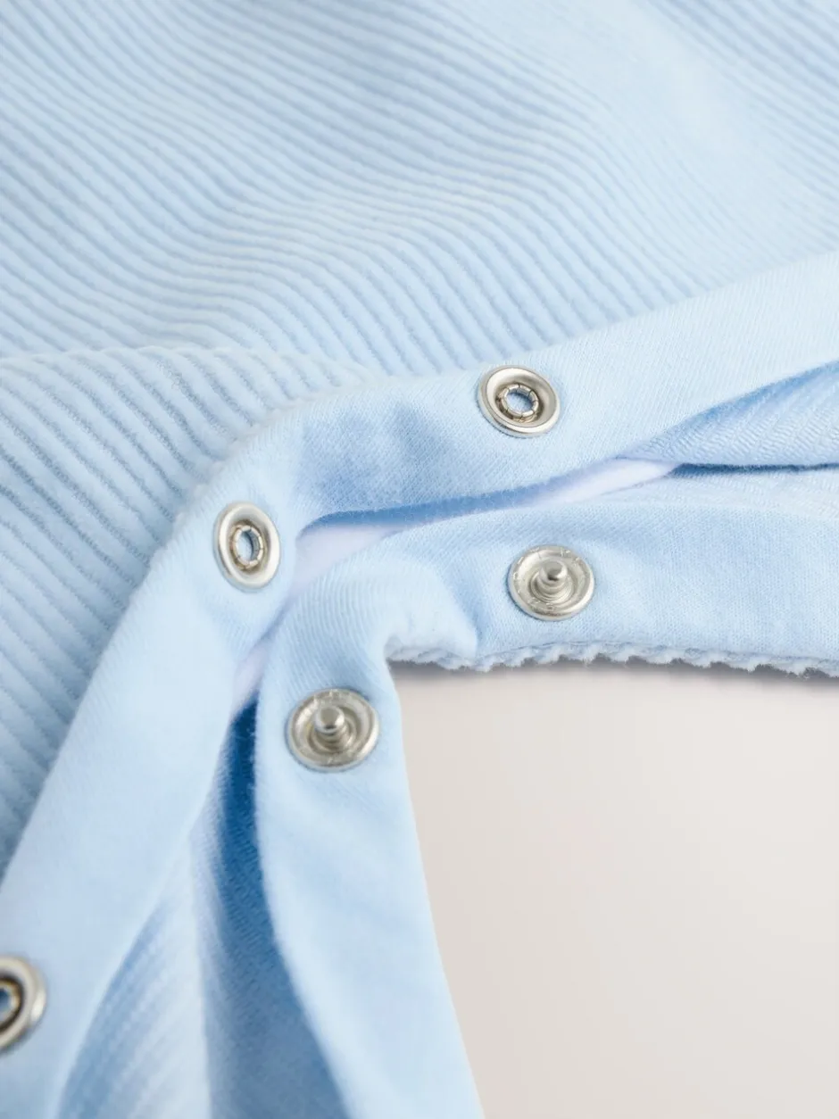 Lavable en machine. Salopette et body 100 % coton. Avertissement : tenir à l’écart du feu et des flammes.