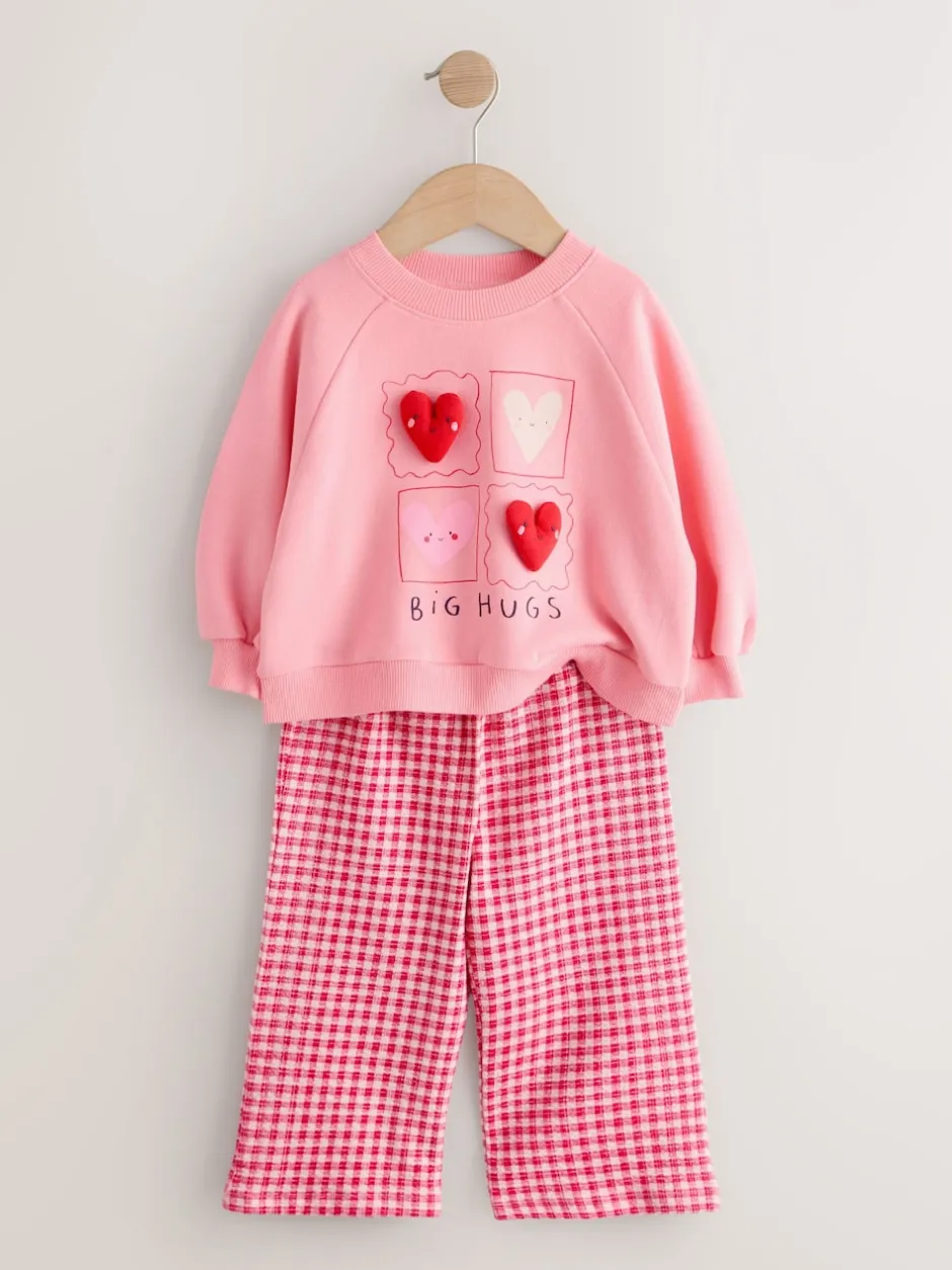Next – Ensemble Sweat-shirt et Pantalons Amples (3mois-7ans) Coeur rose