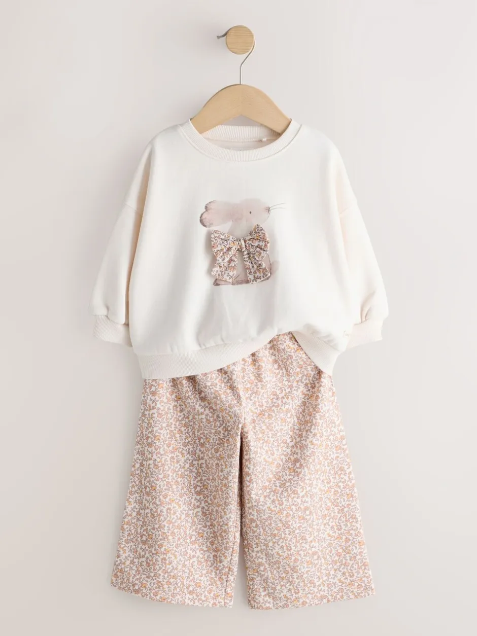 Next – Ensemble Sweat-shirt et Pantalons Amples (3mois-7ans) Crème motif lapin Outlet
