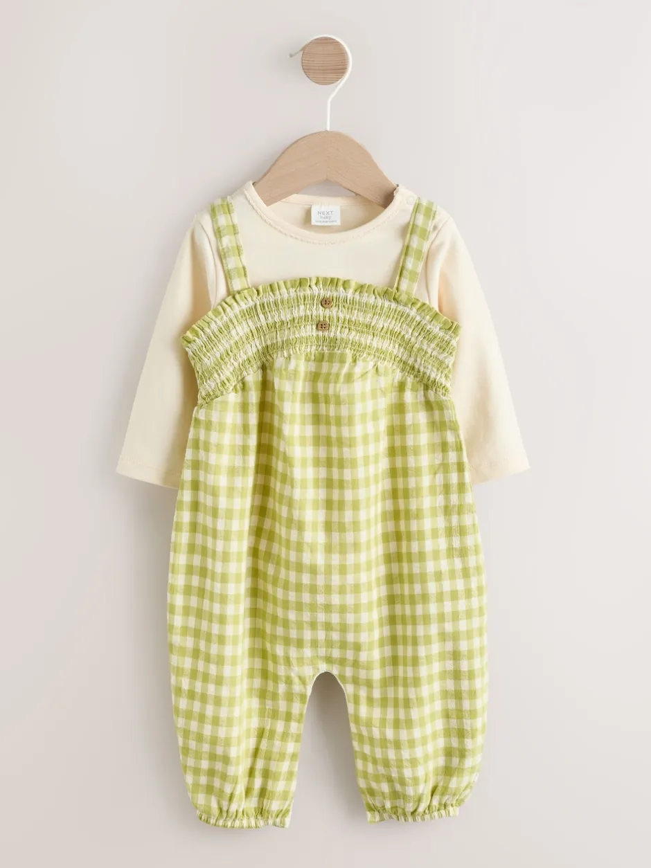 Next Gingham vert – Ensemble 2 pièces salopettes et body bébé (0mois-2ans)