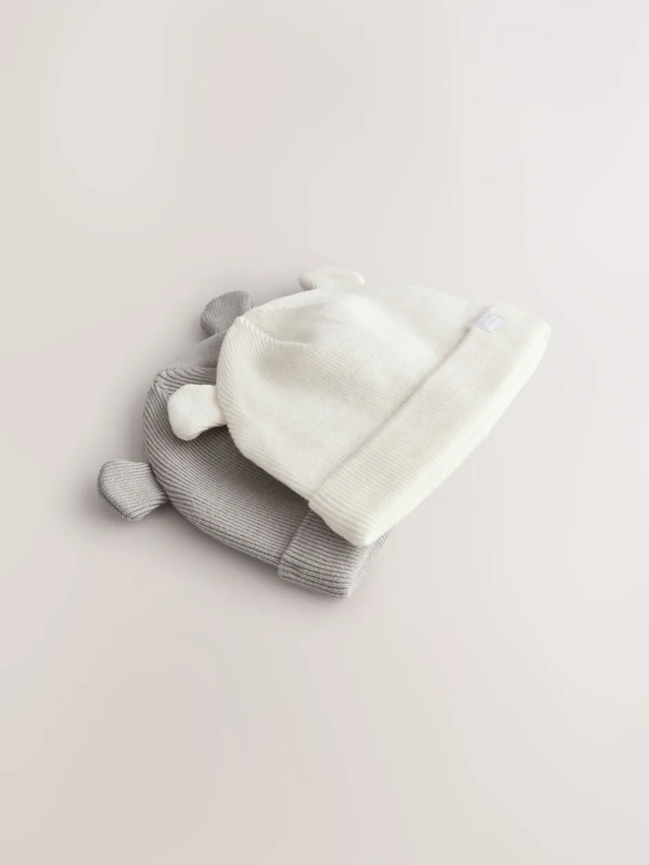 Next Gris/Blanc – Lot de 2bonnets côtelés pour bébé