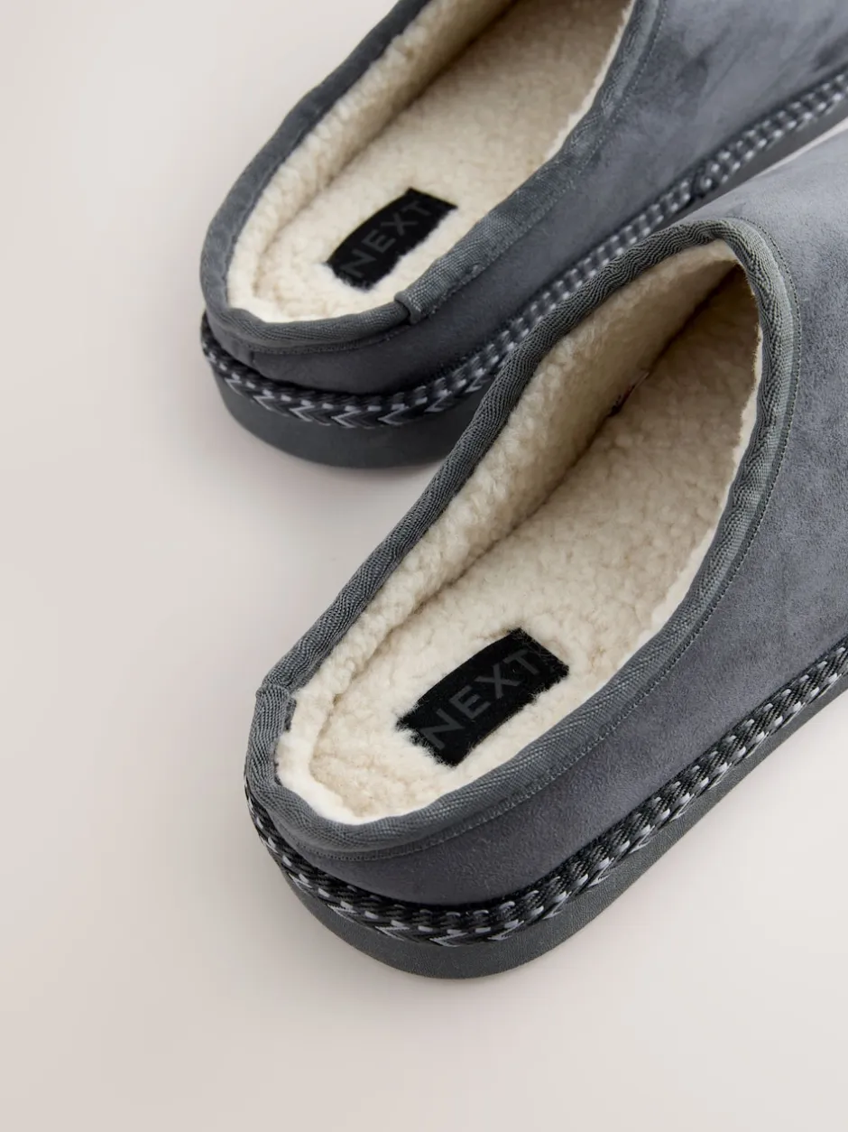 Next Gris – Chaussons mules à bande en microdaim Hot