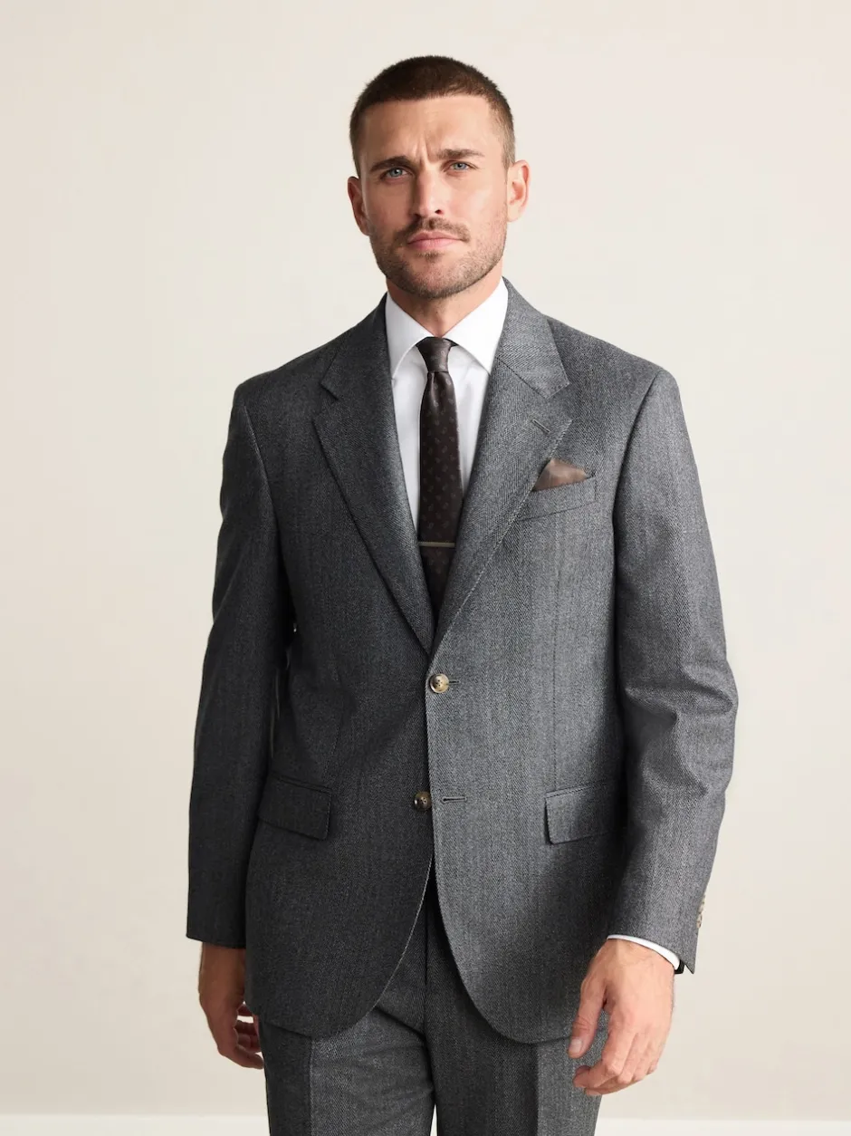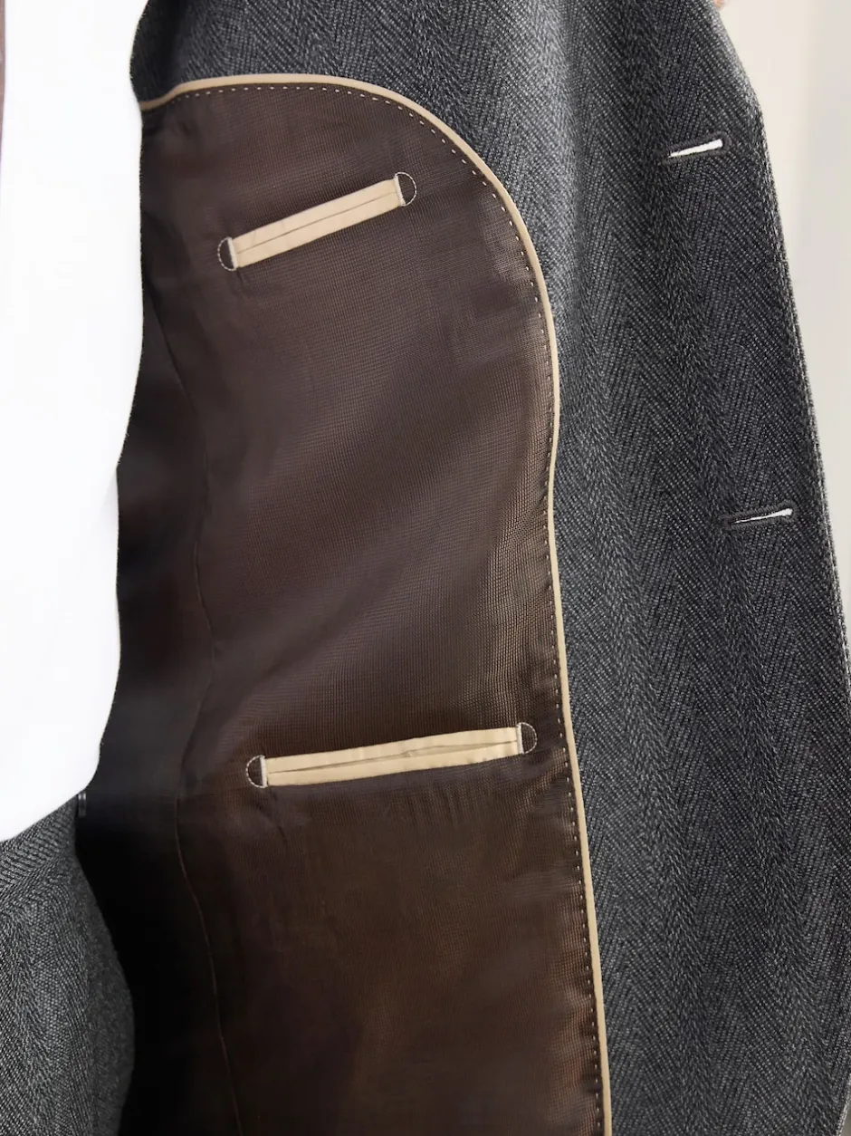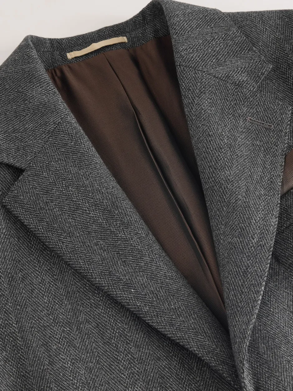 Next Gris de charbon de bois – Veste de costume à chevrons Marzotto 100% laine italienne Coupe classique Online