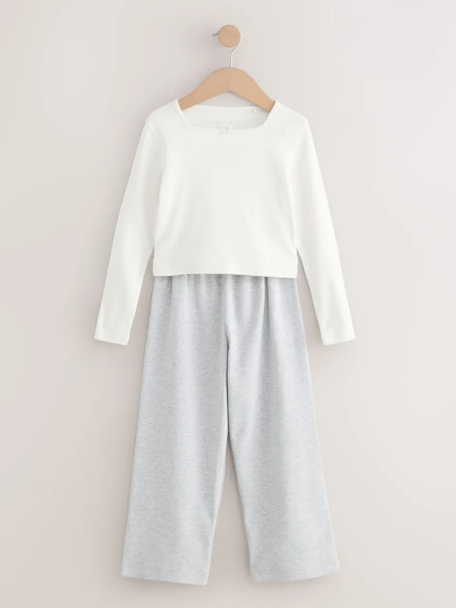 Next Gris/écru – Pyjama à taille pliée douce (3-16ans) Clearance