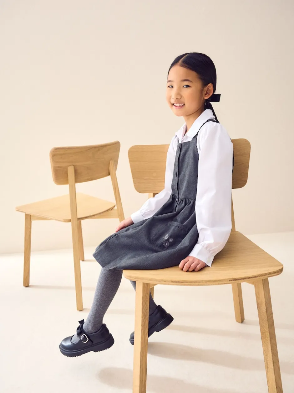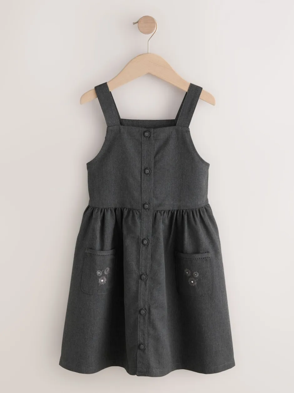 Next Gris – Robe d’école Tablier brodée boutonnée sur le devant (3-14ans) Online