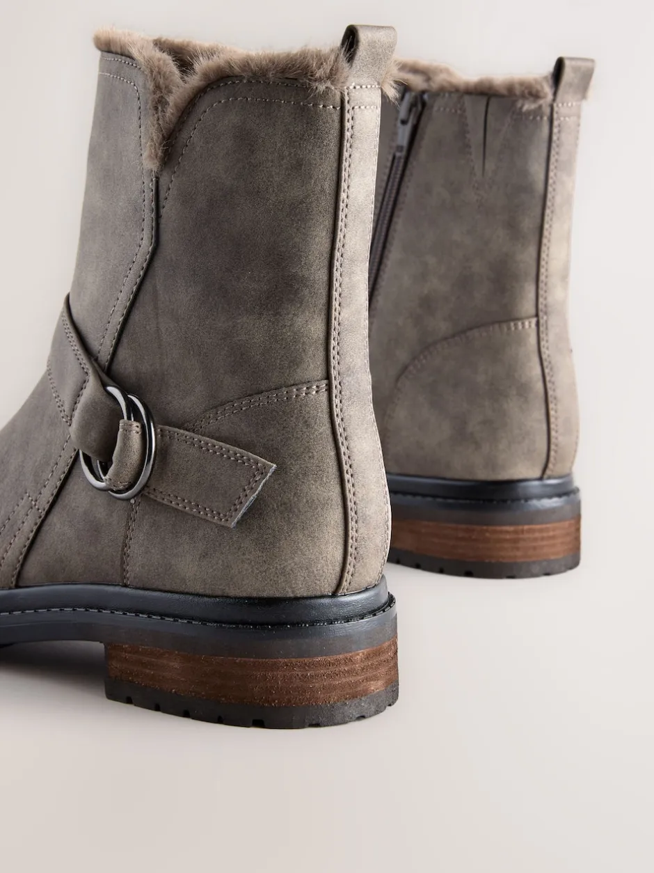 Next Gris texturé – Bottines Forever Comfort® en fourrure synthétique Sale