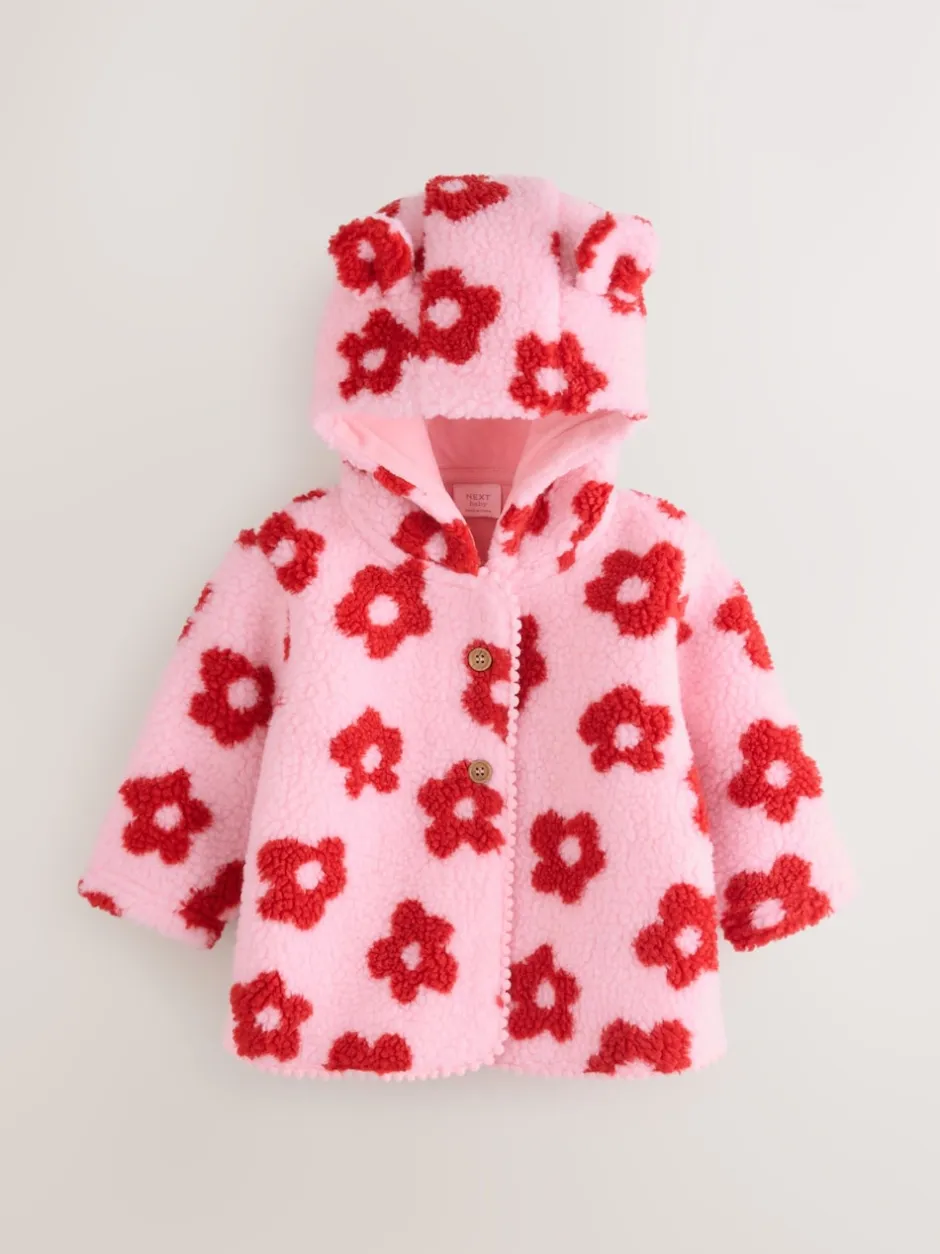 Next Imprimé fleuri rose sur l’ensemble – Veste bébé à capuche en peau lainée (0mois2ans) New