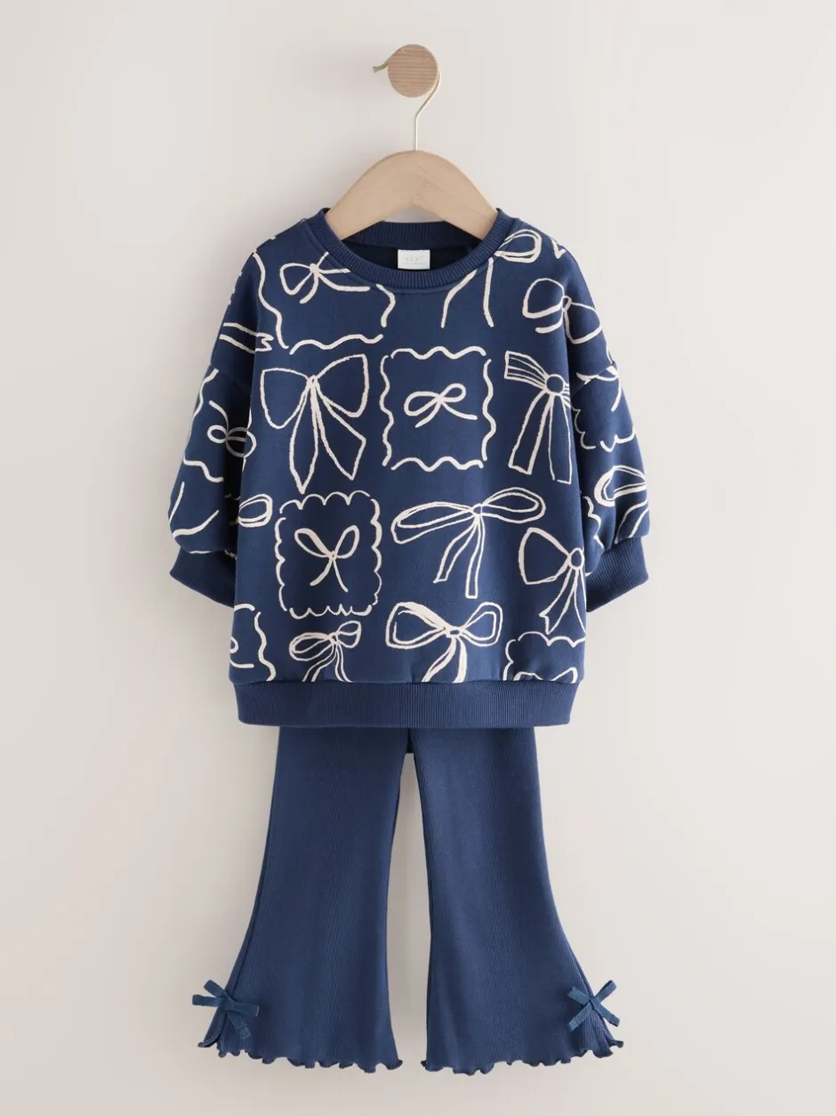 Next Imprimé nœud bleu marine – Ensemble sweat et legging évasé (3mois-7ans) Outlet