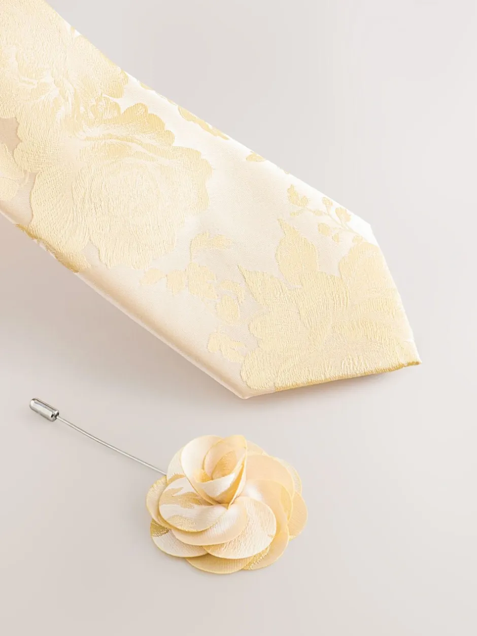 Next Jaune – Ensemble pochette à cravate et broche Clearance