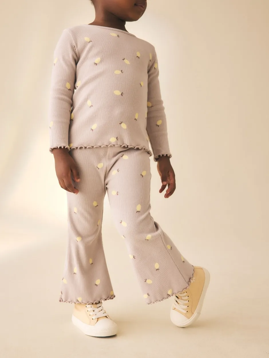 Next – Leggings évasés à côtes (3mths-7yrs) Imprimé citron neutre Outlet