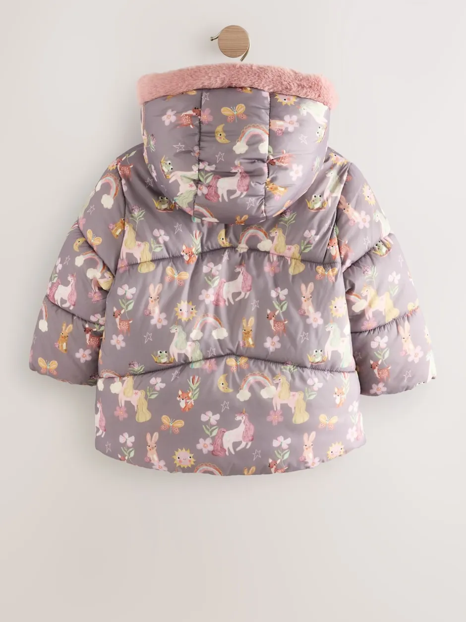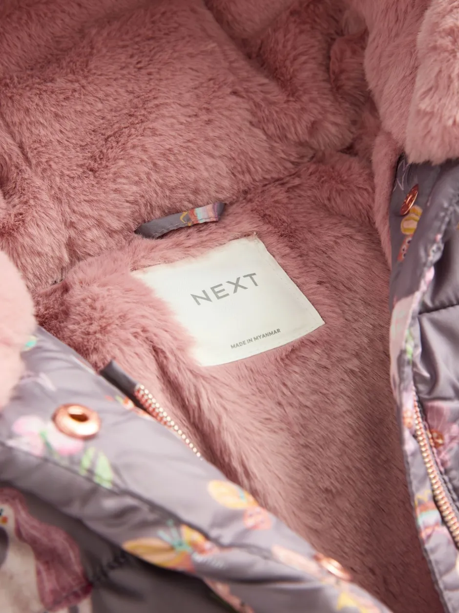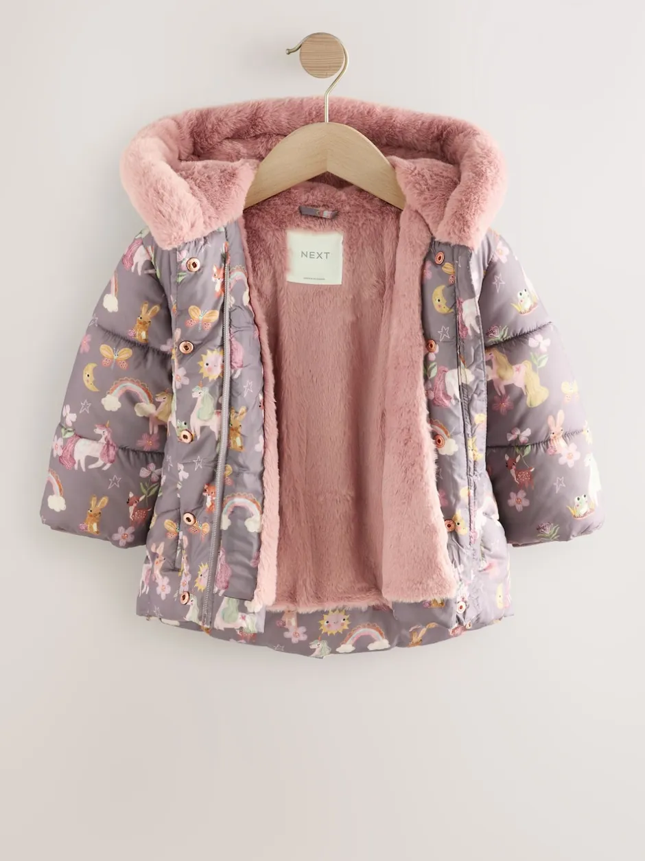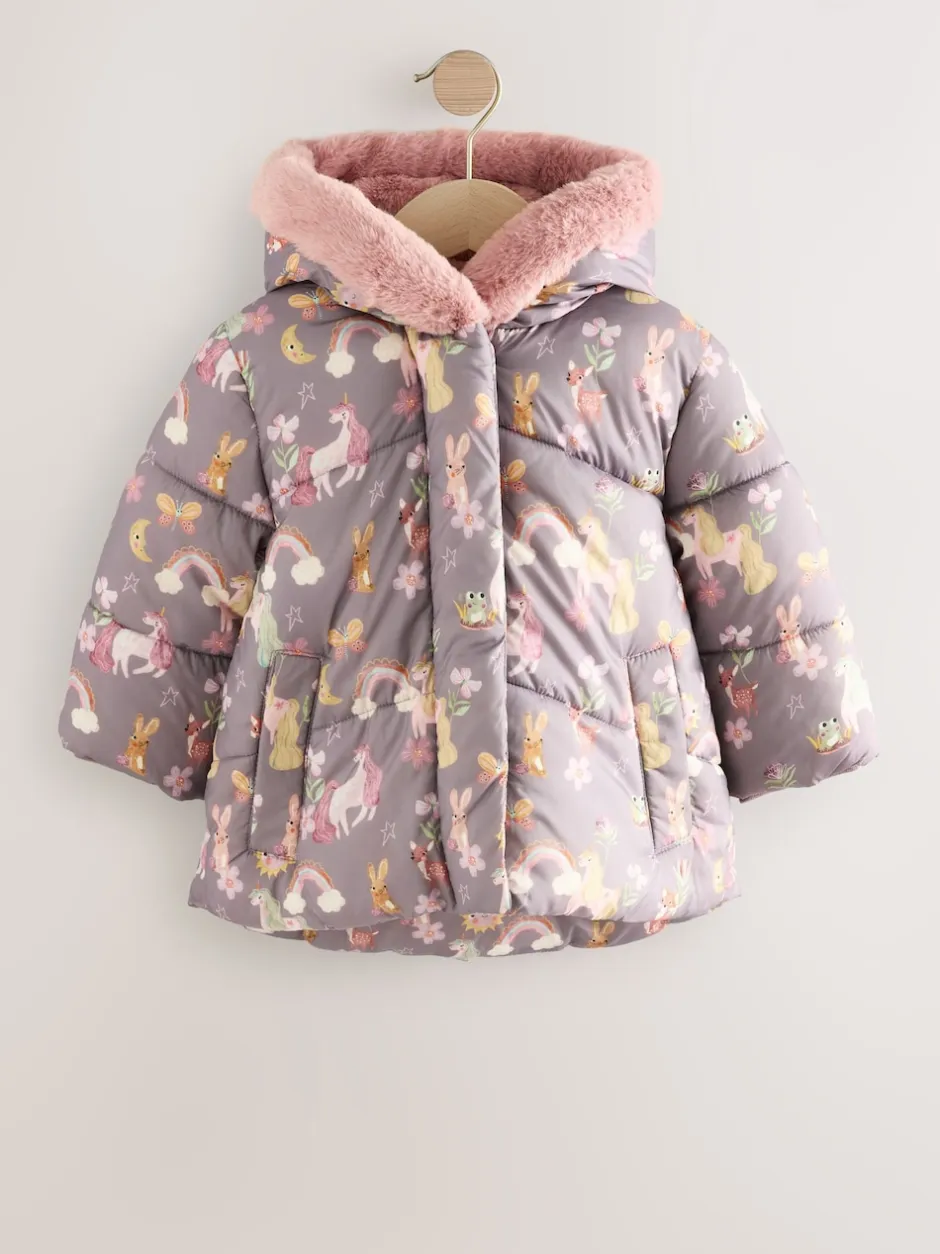 Next Licorne Damson – Manteau rembourré résistant à la douche avec bordure en fausse fourrure (3mois7ans) Best