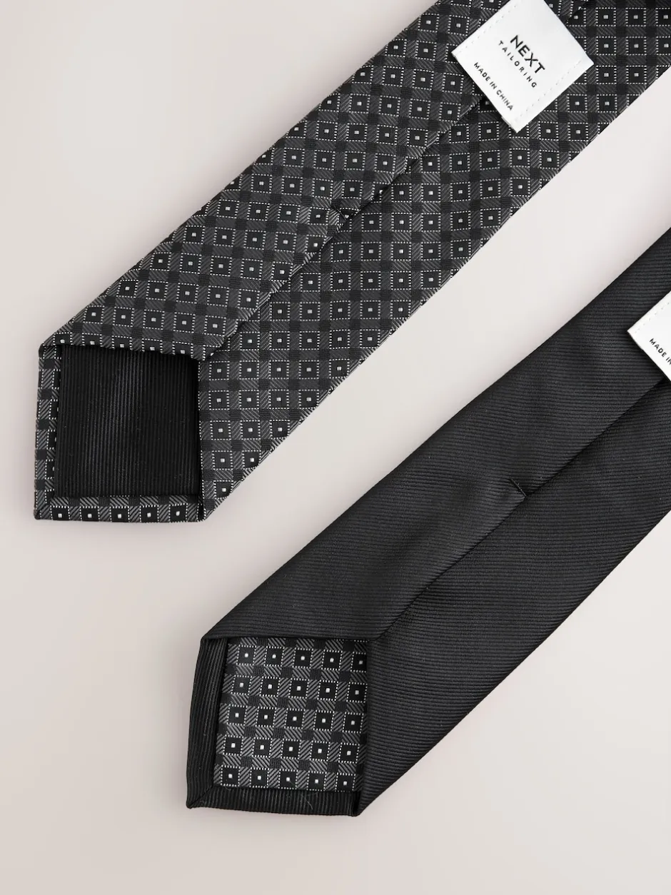 Next – Lot de 2 cravates clip texturées Noir