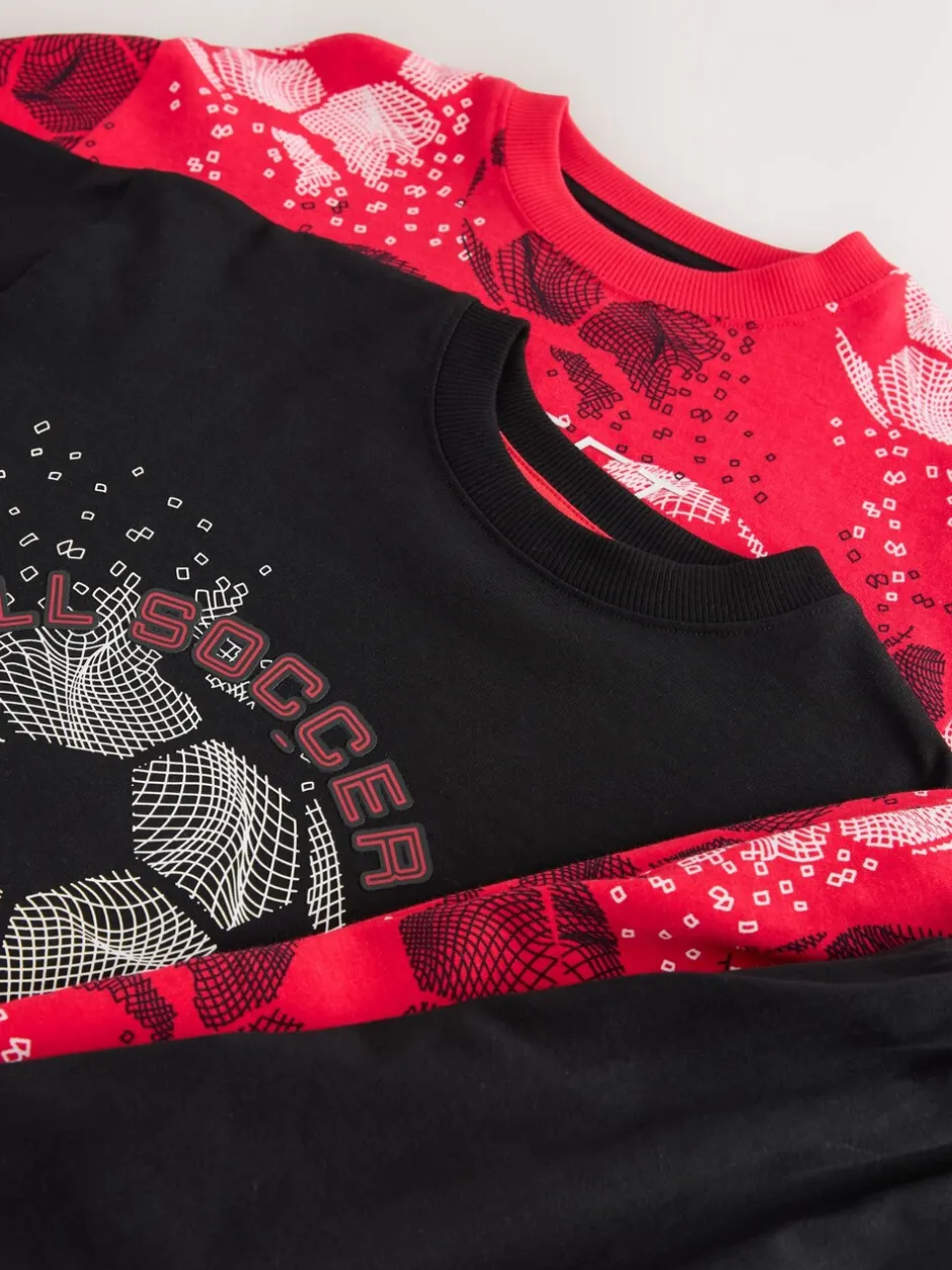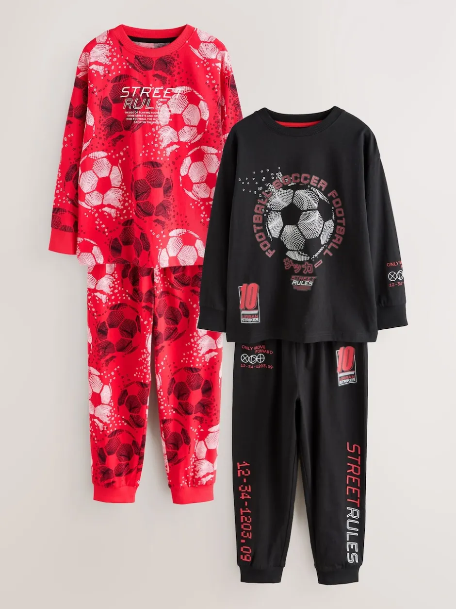 Next – Lot de 2 pyjamas à manches longues (3-16ans) Rouge/noir motif football