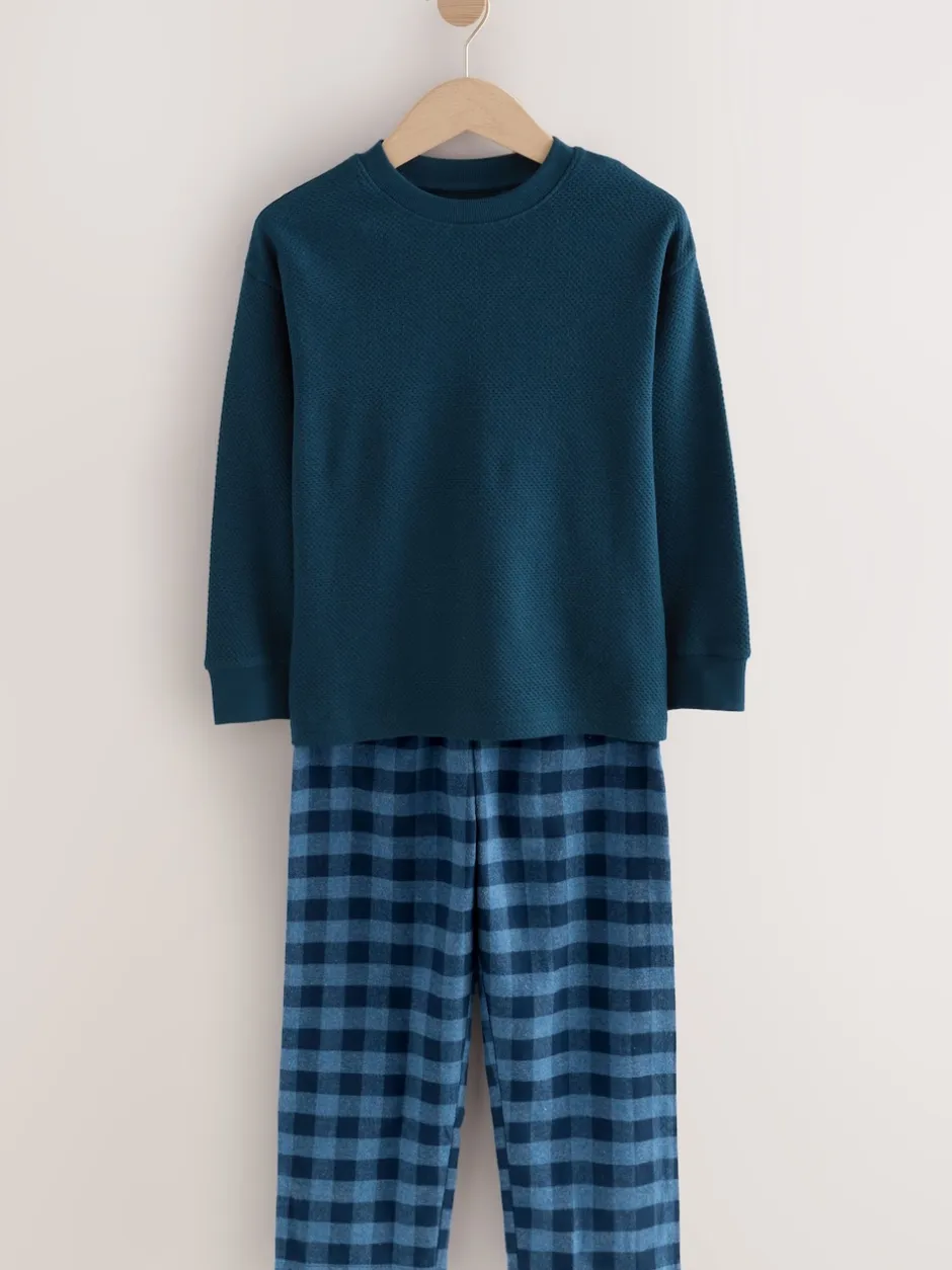 Next – Lot de 2 pyjamas en tissu à carreaux à manches longues (3-16ans) Bleu/Gris Outlet