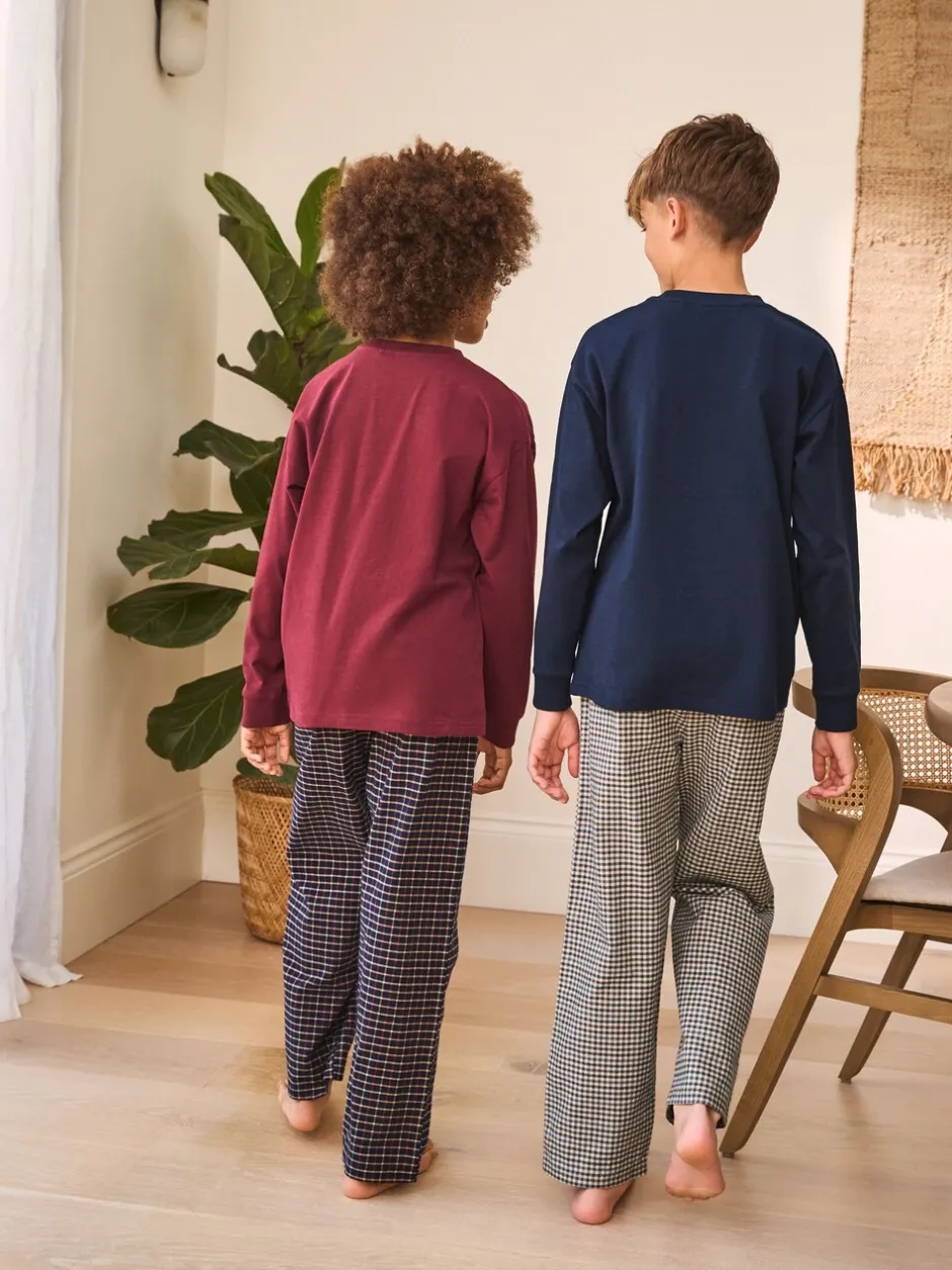 Next – Lot de 2 pyjamas en tissu à carreaux à manches longues (3-16ans) Marine/Bourgogne Outlet
