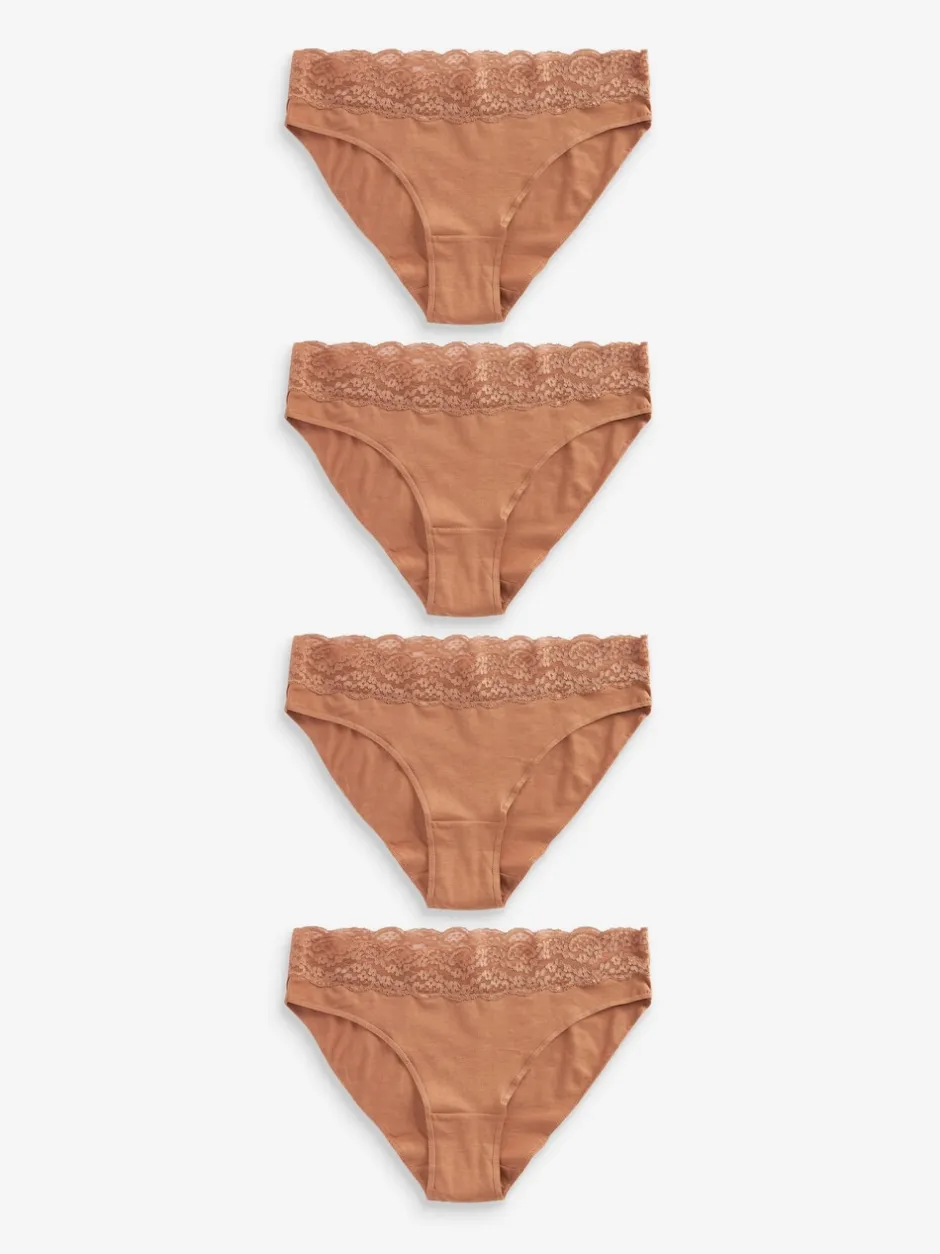 Next – Lot de 4 culottes en coton et dentelle Caramel Nude