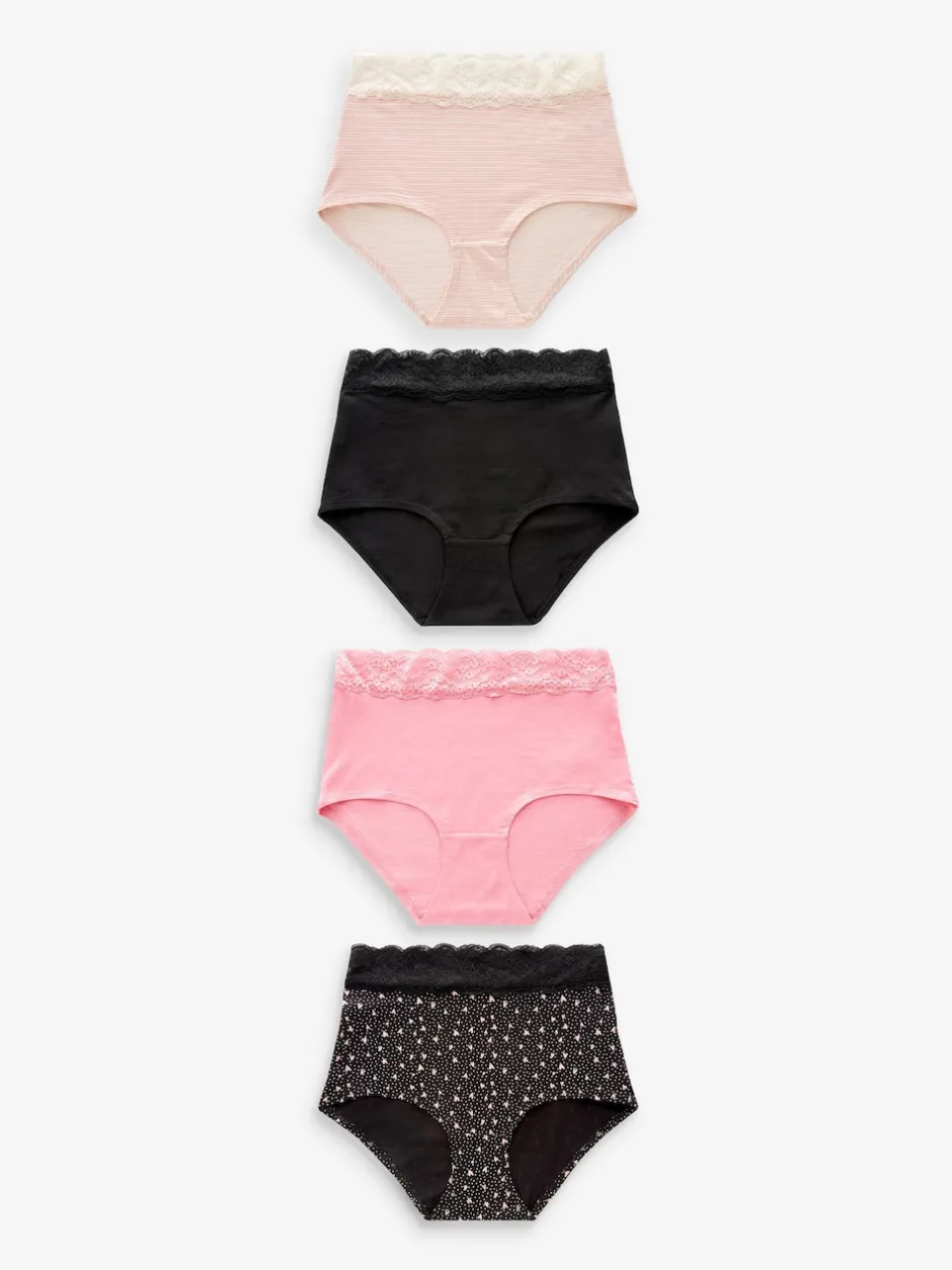 Next – Lot de 4 culottes en coton et dentelle Imprimé cœurs noir/rose Online