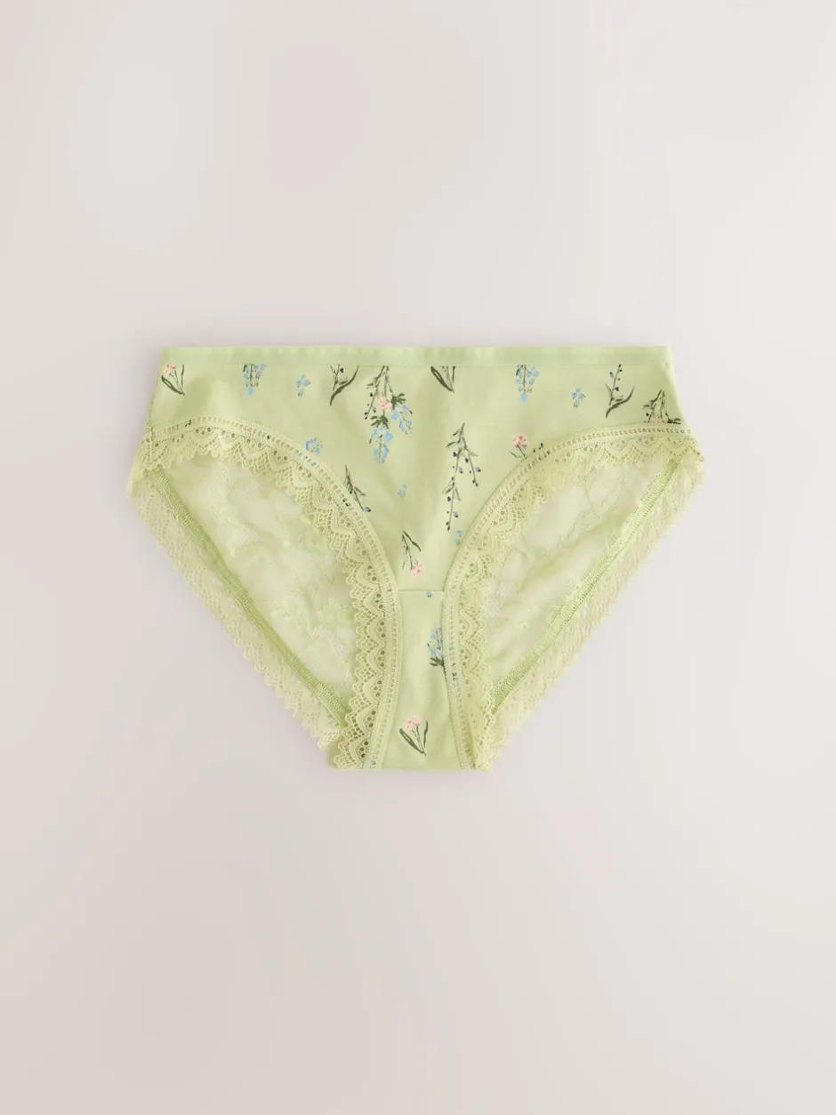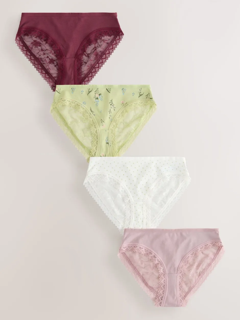Next – Lot de 4 culottes en coton et dentelle Vert à petites fleurs Clearance