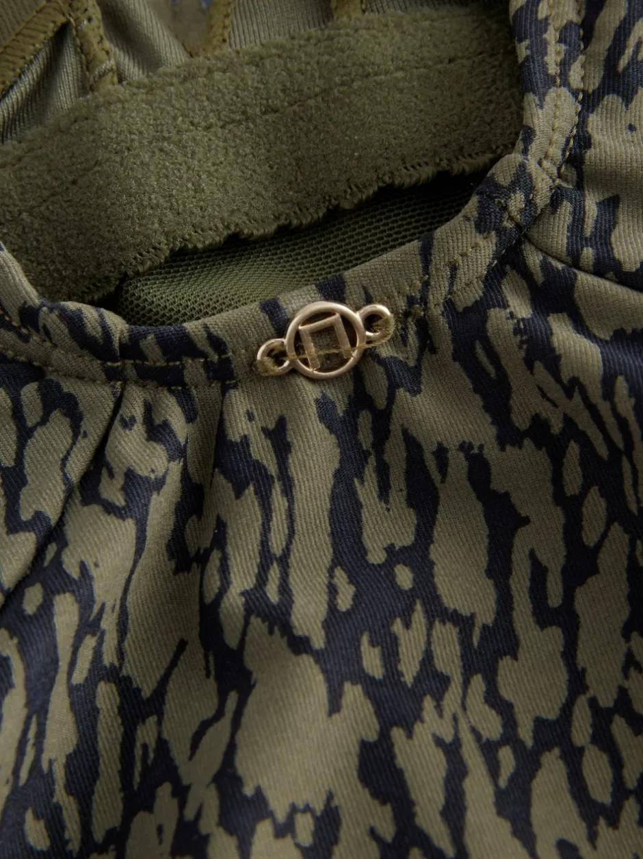 Next – Maillot de bain gainant le ventre froncé Vert kaki/noir Best
