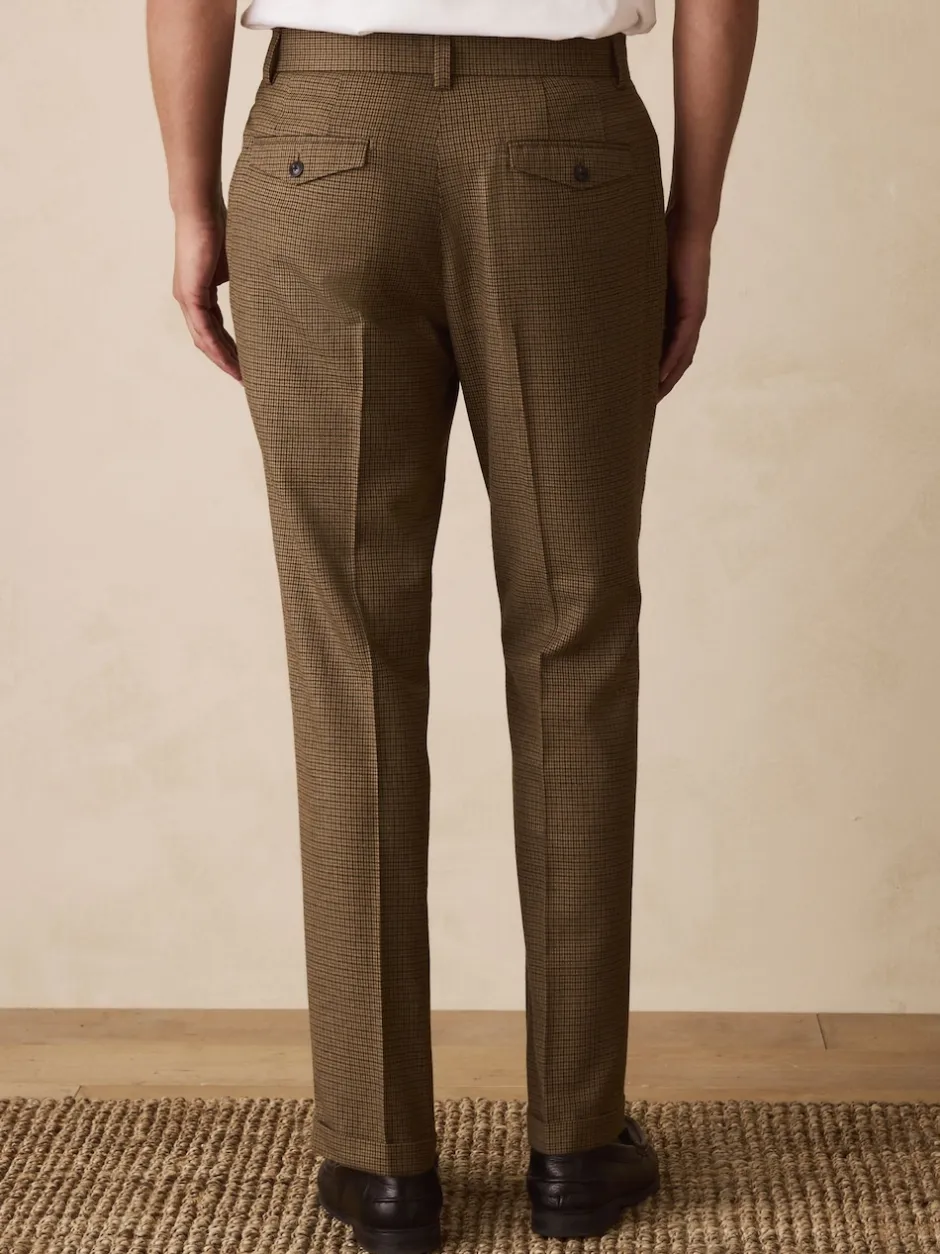 Next Marron à petit motif pied-de-poule – Slim Fit (Slim Fit) – Pantalons texturés élégants New