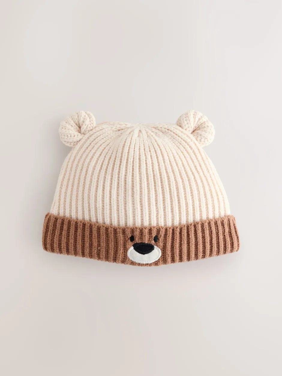 Next Marron – Bonnet côtelé bébé Bear Face (0mois à2ans) Outlet