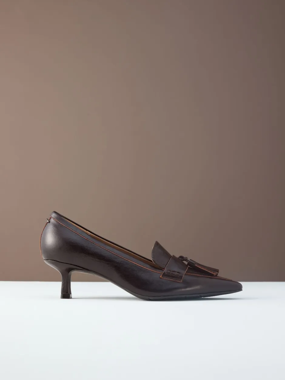 Next Marron choco – Cuir haut de gamme avec mocassins à talons à glands Motionflex à bout pointu Clearance