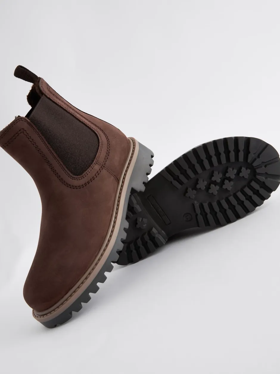 Next Marron chocolat – Bottes Chelsea en cuir à doublure chaude Sale