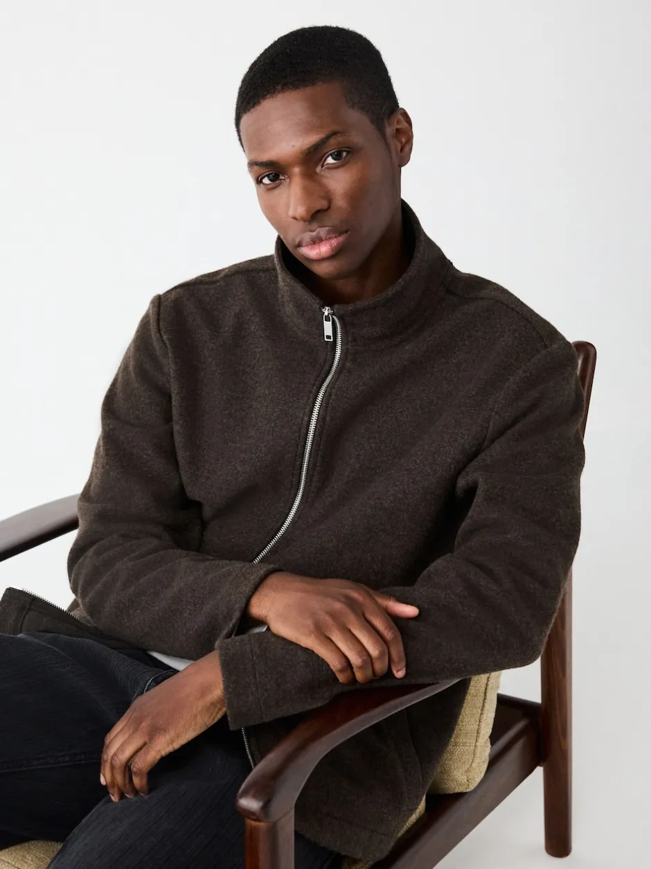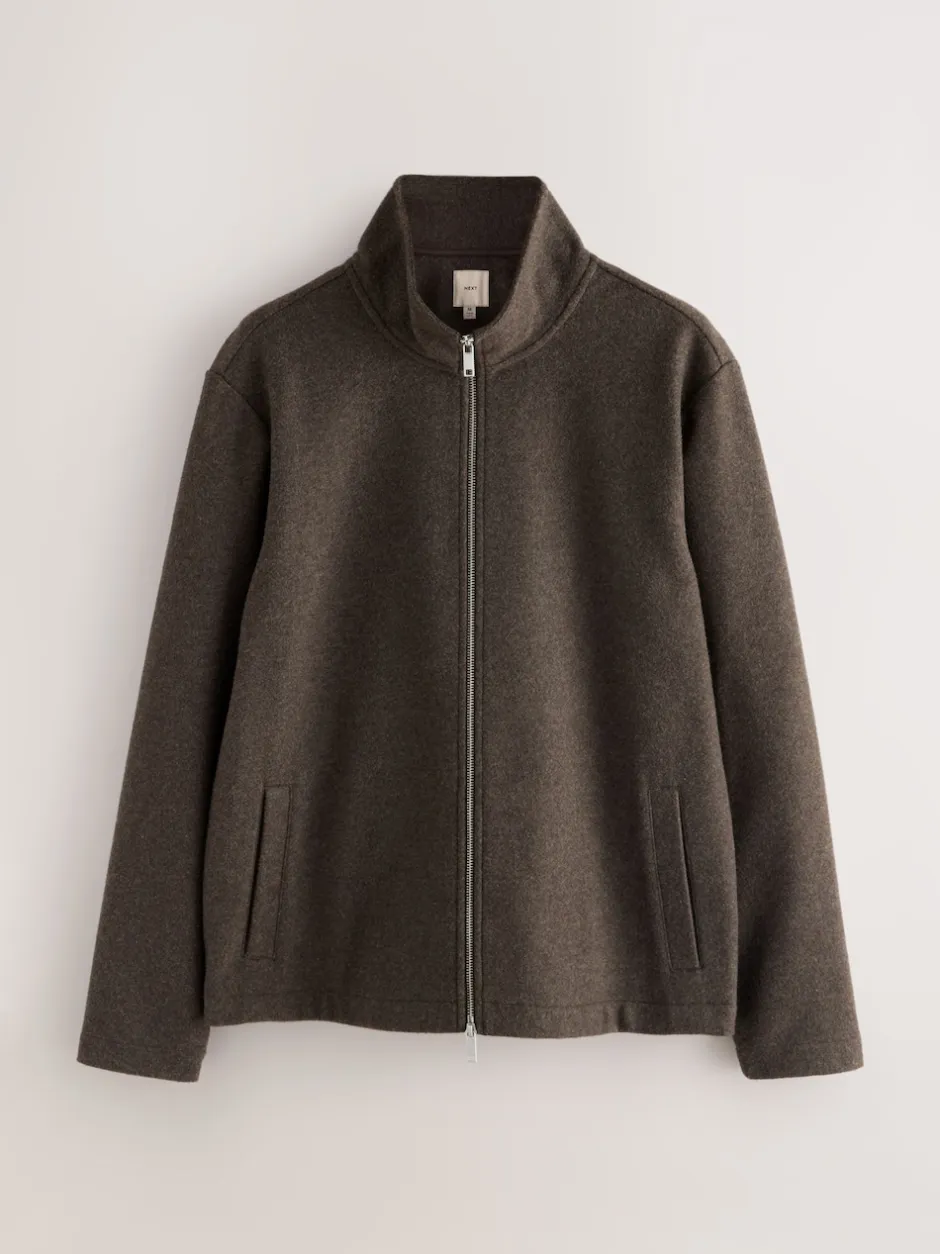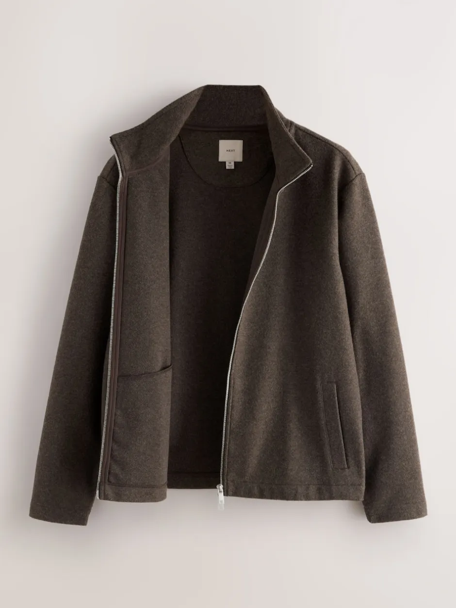 Next Marron chocolat – Polaire zippée aspect laine à col cheminée Clearance