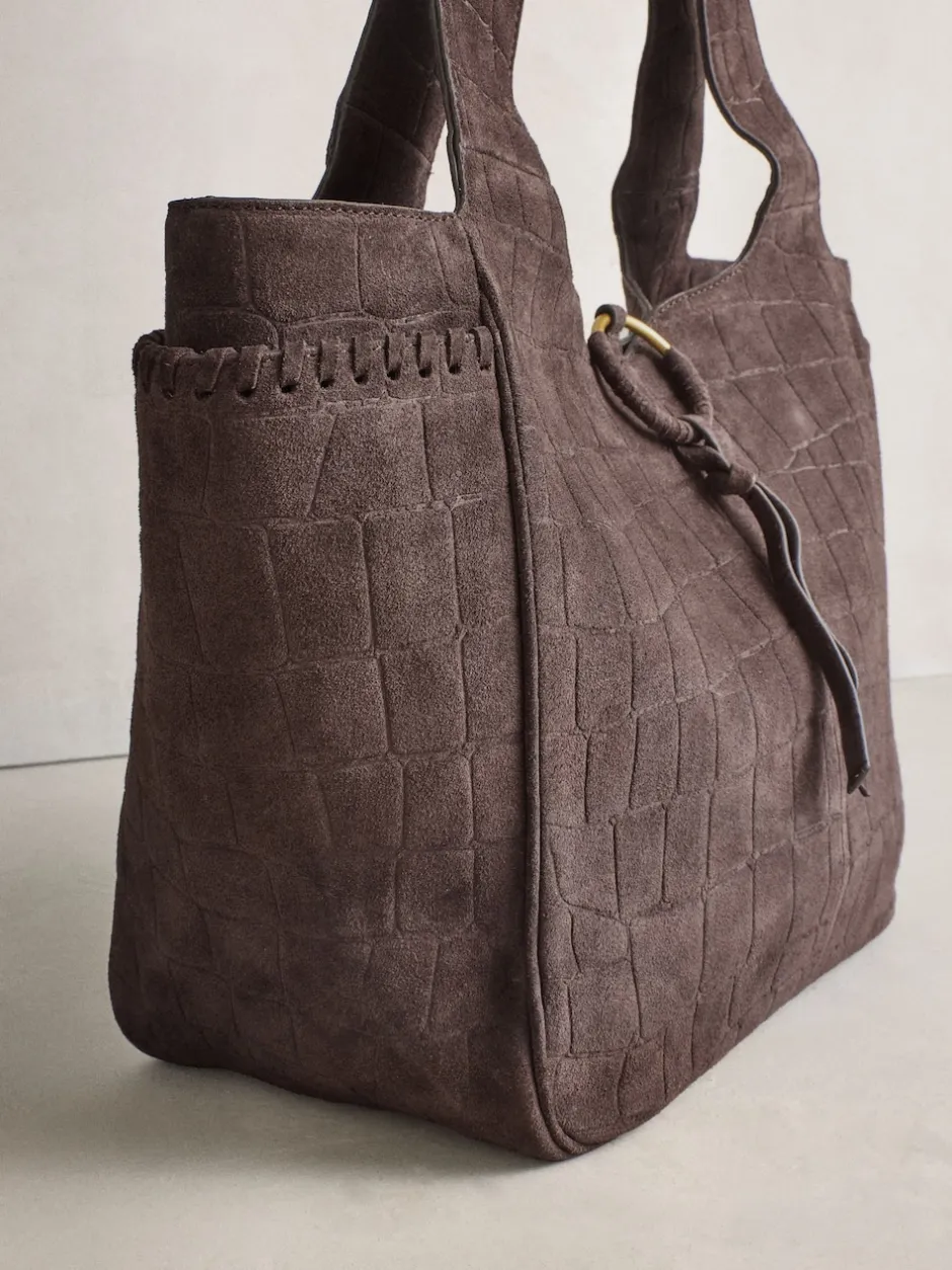 Next Marron chocolat – Sac bandoulière en Daim effet croco Outlet
