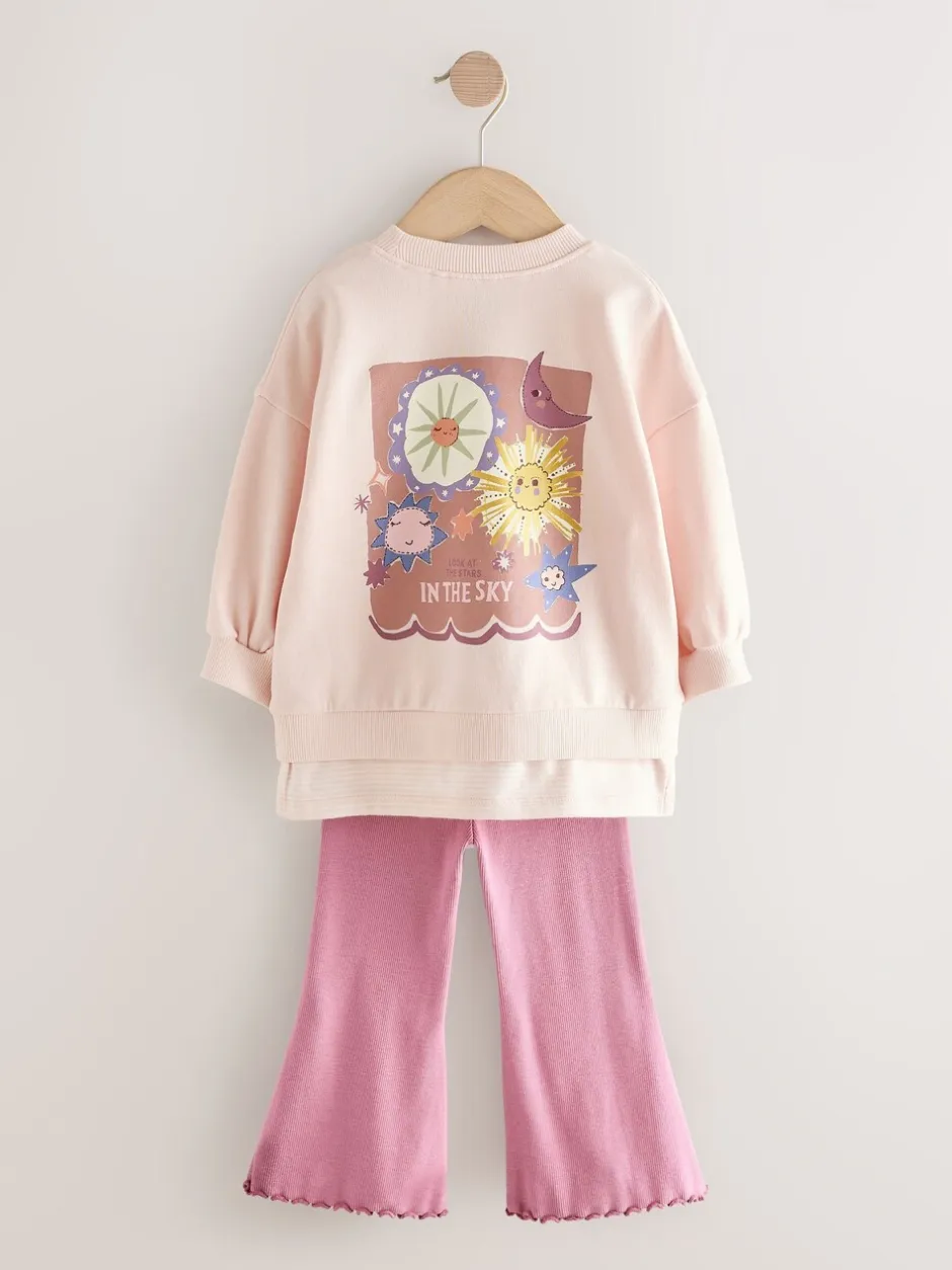 Next Motif étoiles roses – Ensemble haut et évasé à manches longues (3mois7ans) Hot
