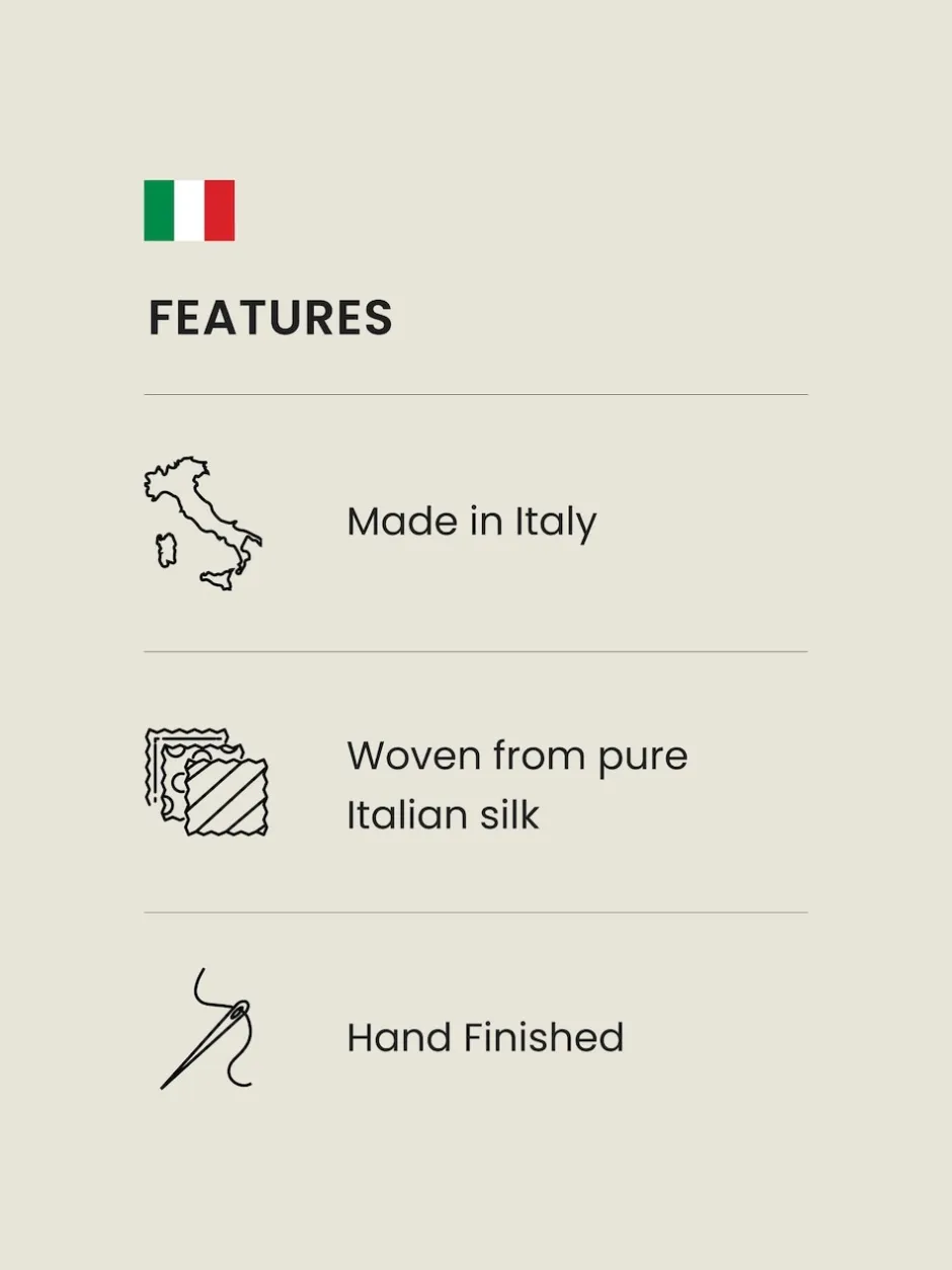Largeur 8 cm Nettoyage à sec uniquement. 100 % soie.