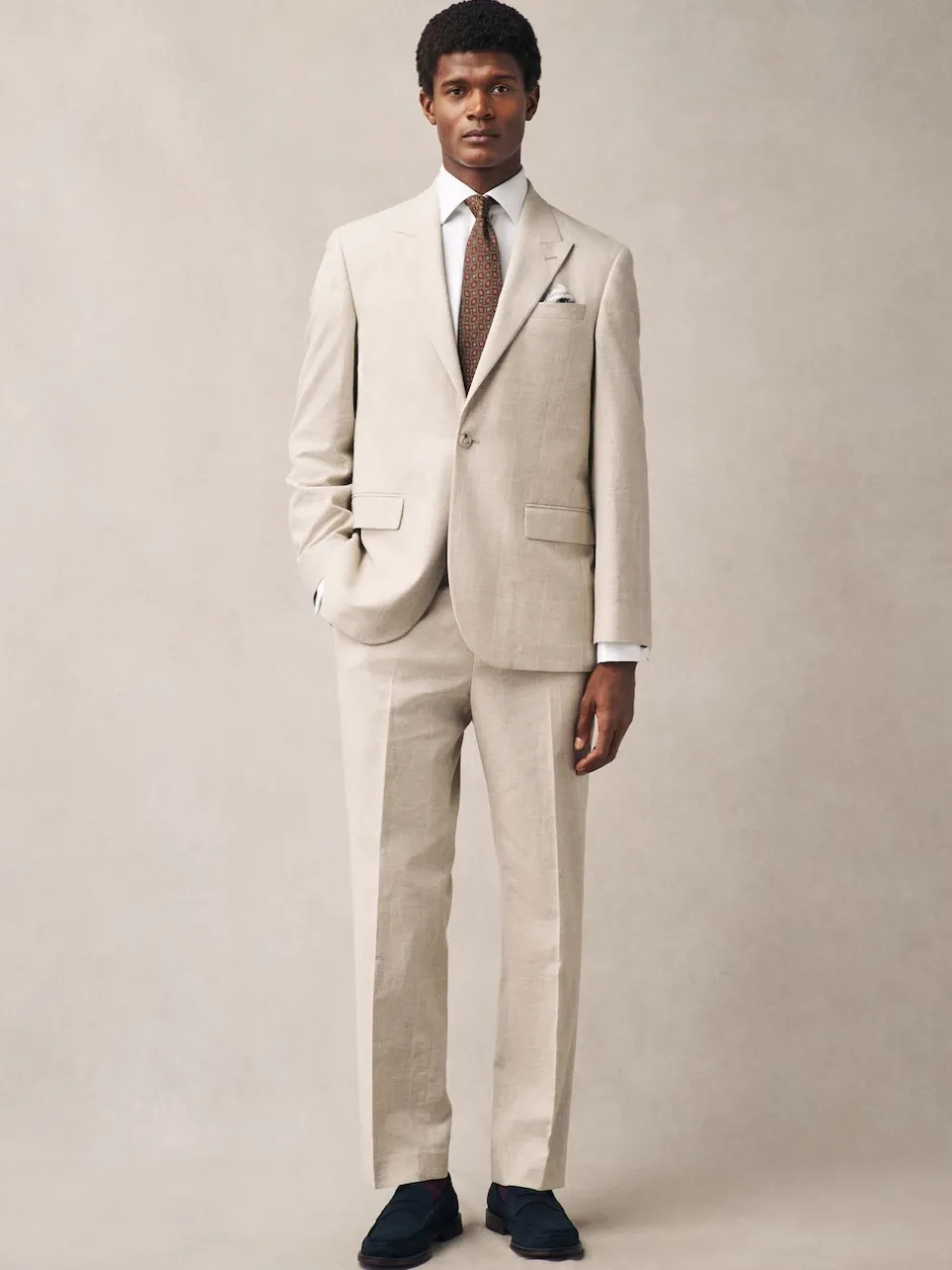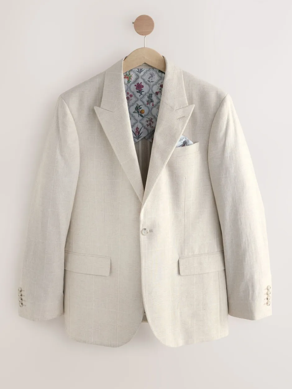 Next neutre – Veste de costume à carreaux en lin Blend coupe régulière