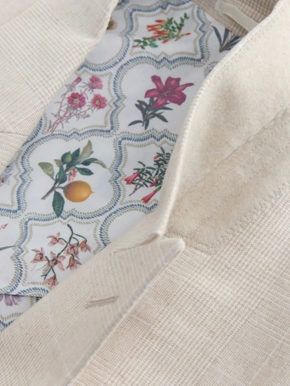Matière principale 55% lin, 45% coton. Doublure : 82% polyester recyclé, 18% coton.