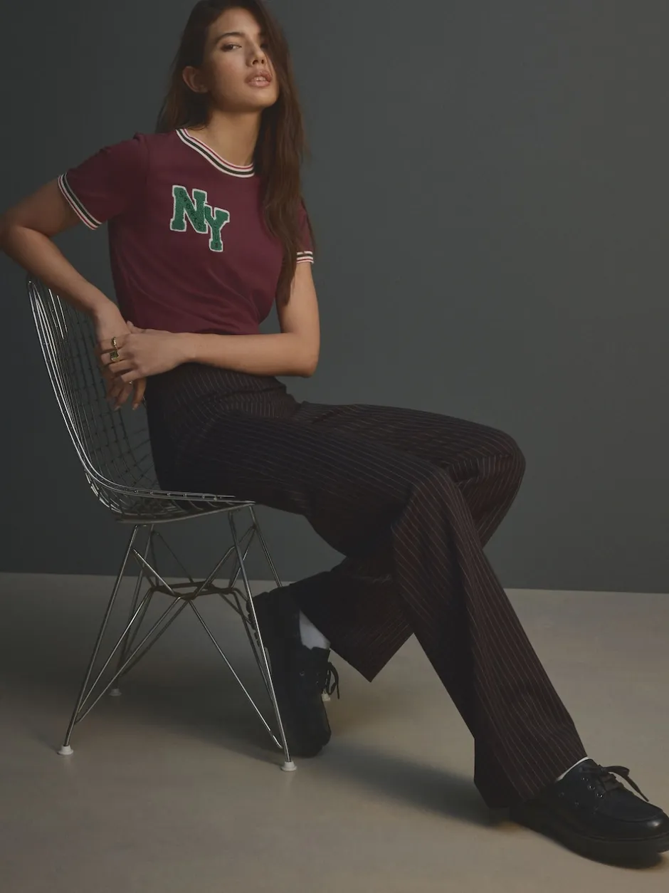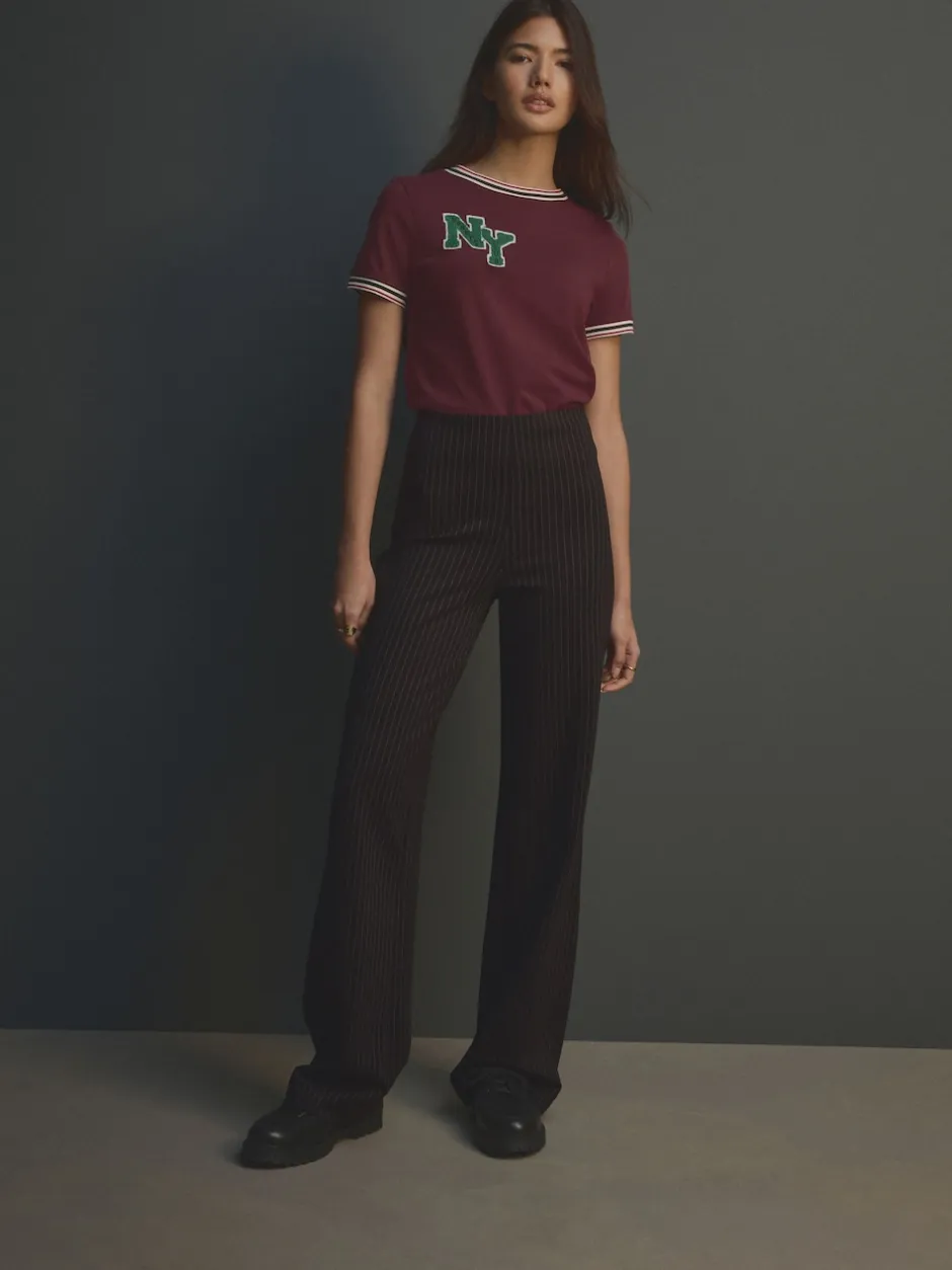 Next Noir à fines rayures – Pantalon ample en jersey point de Rome lissant Discount