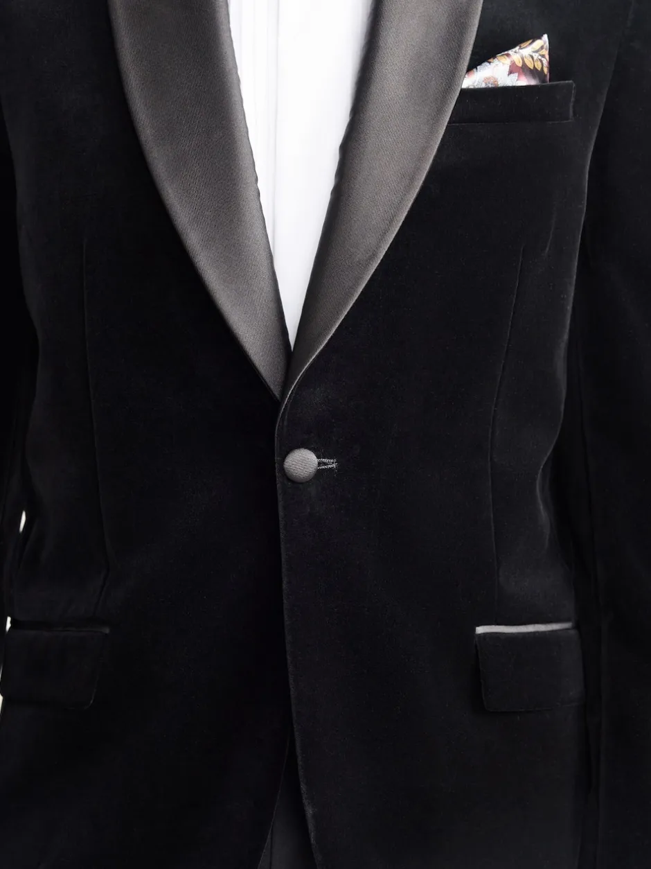 Next Noir – Ajustement régulier – Blazer Signature Pontoglio en velours italien avec revers châle New