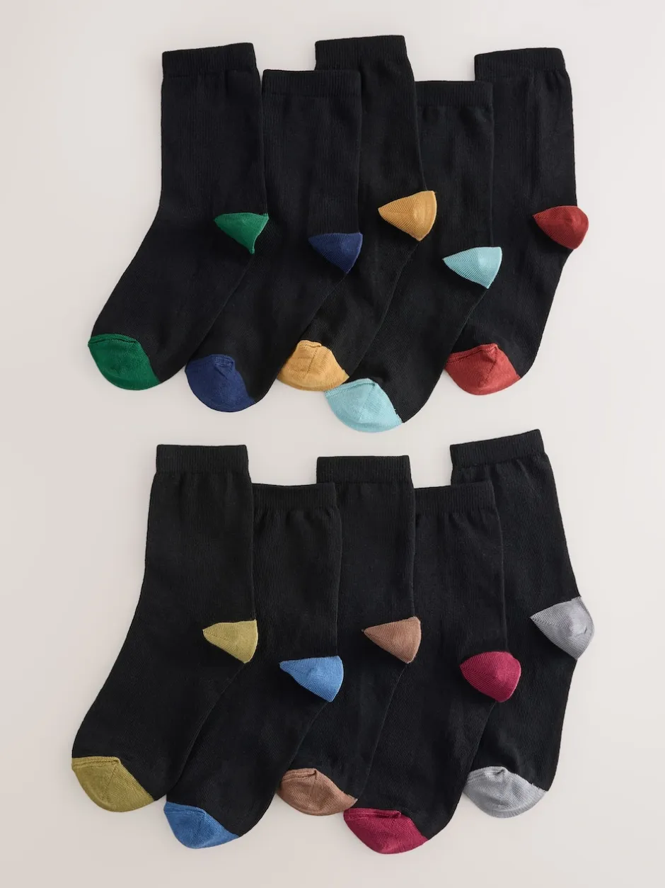 Next Noir avec talon et orteil contrastés – Paquet de chaussettes en coton riche 10 Hot