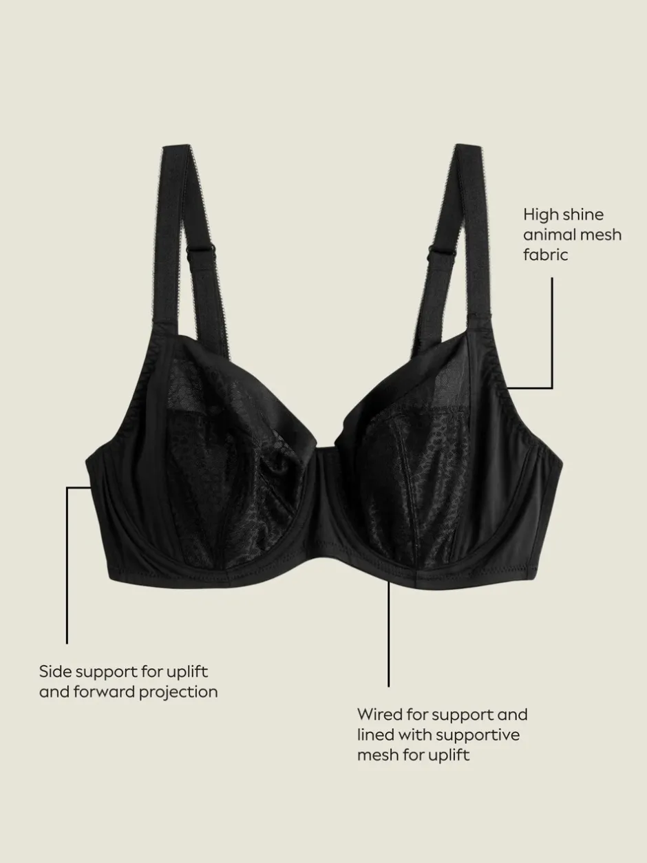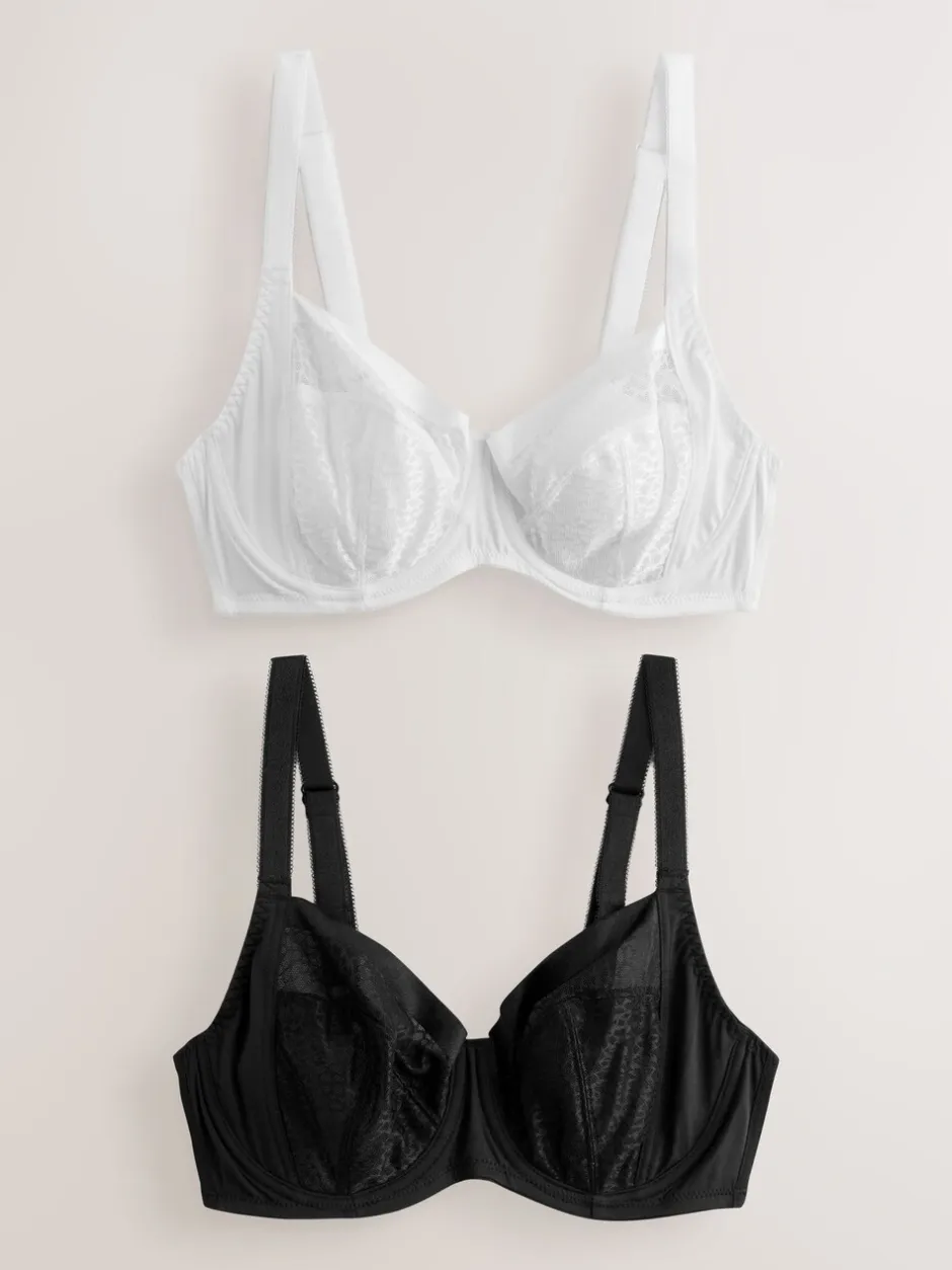 Next Noir/Blanc – DD+ non rembourré Balcon lissant Animal maille à armatures avec soutien latéral Soutiens-gorge 2 Lot Discount
